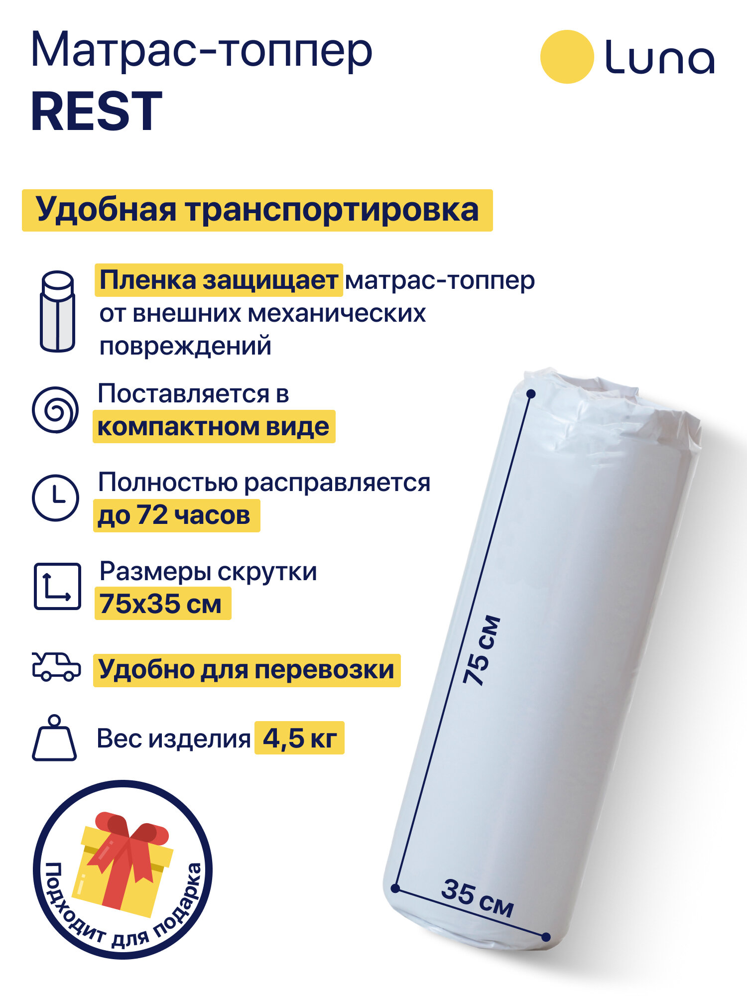 СохранитьМатрас-топпер Luna Rest двухсторонний, ортопедический, анатомический 140х190 см, высота 6 см интересное: