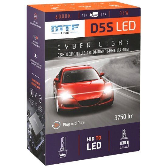Купить Светодиодные лампы Mtf Light , серия CYBER LIGHT, D5S, 35W, 3750lm, 6000K, кулер, комплект.