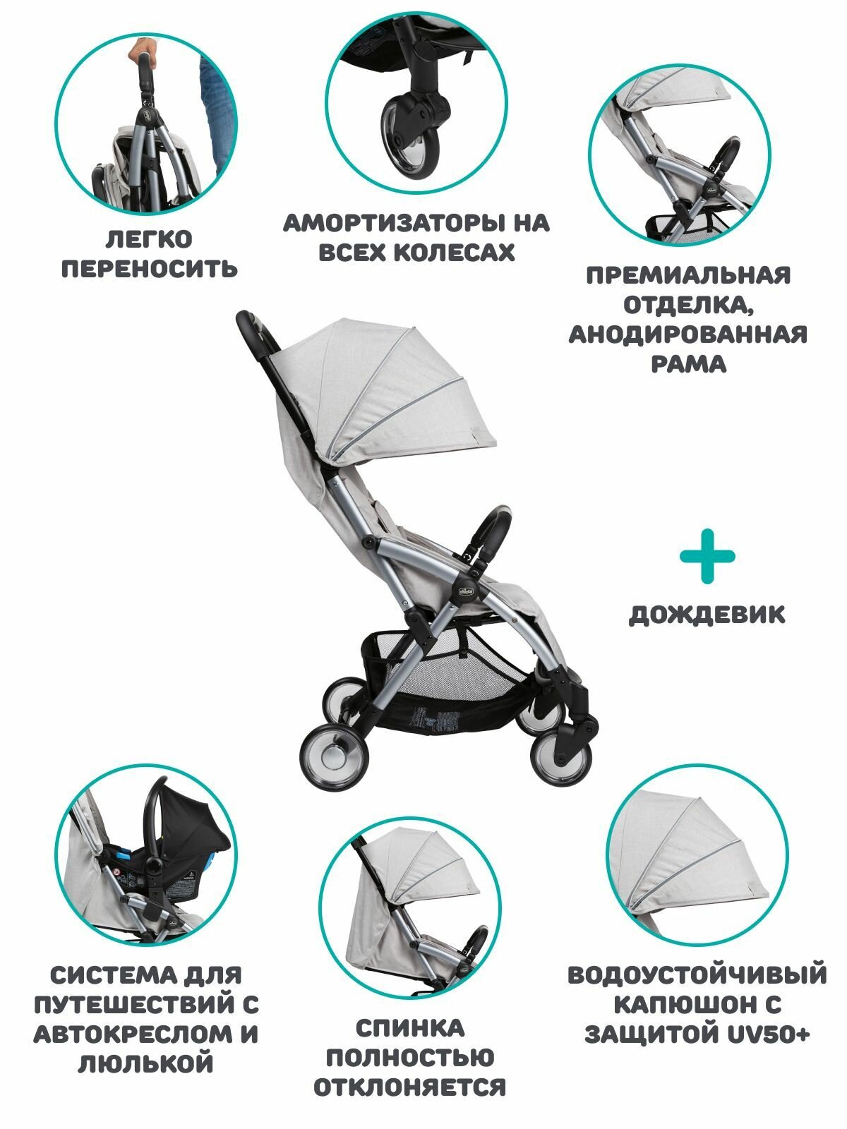 Прогулочная коляска Chicco Goody Plus, цвет Grey Mist интересное: