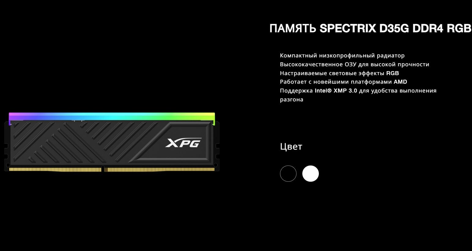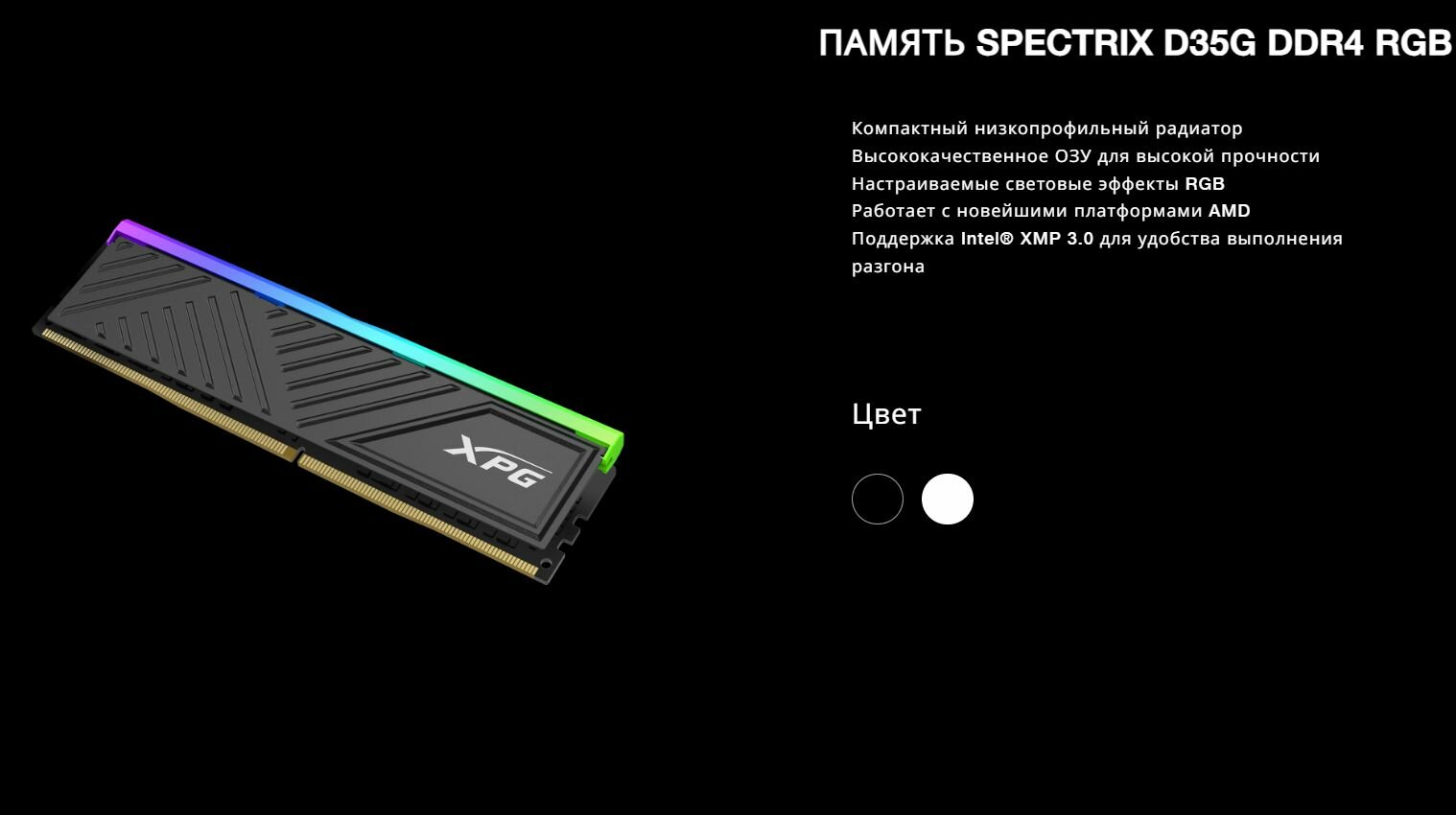 Оперативная память Adata DDR4 8Gb 3200MHz pc-25600 XPG SPECTRIX D35G RGB CL16 1.35V (AX4U32008G16A-SBKD35G)