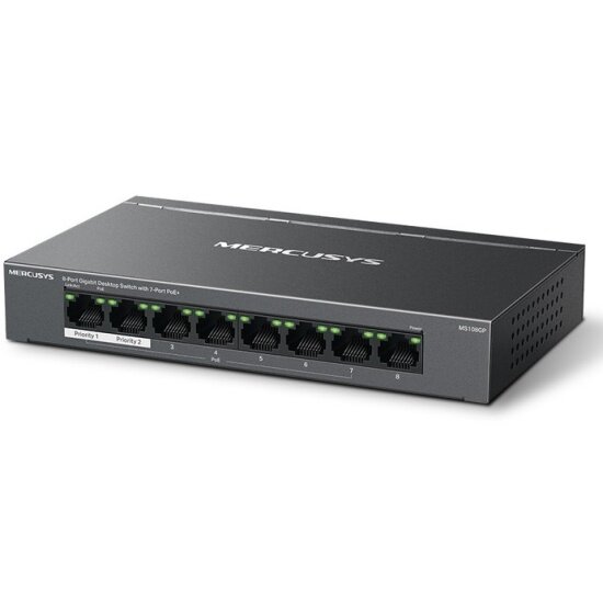 Коммутатор Mercusys MS108GP с 8 гигабитными портами (7 портов PoE+)