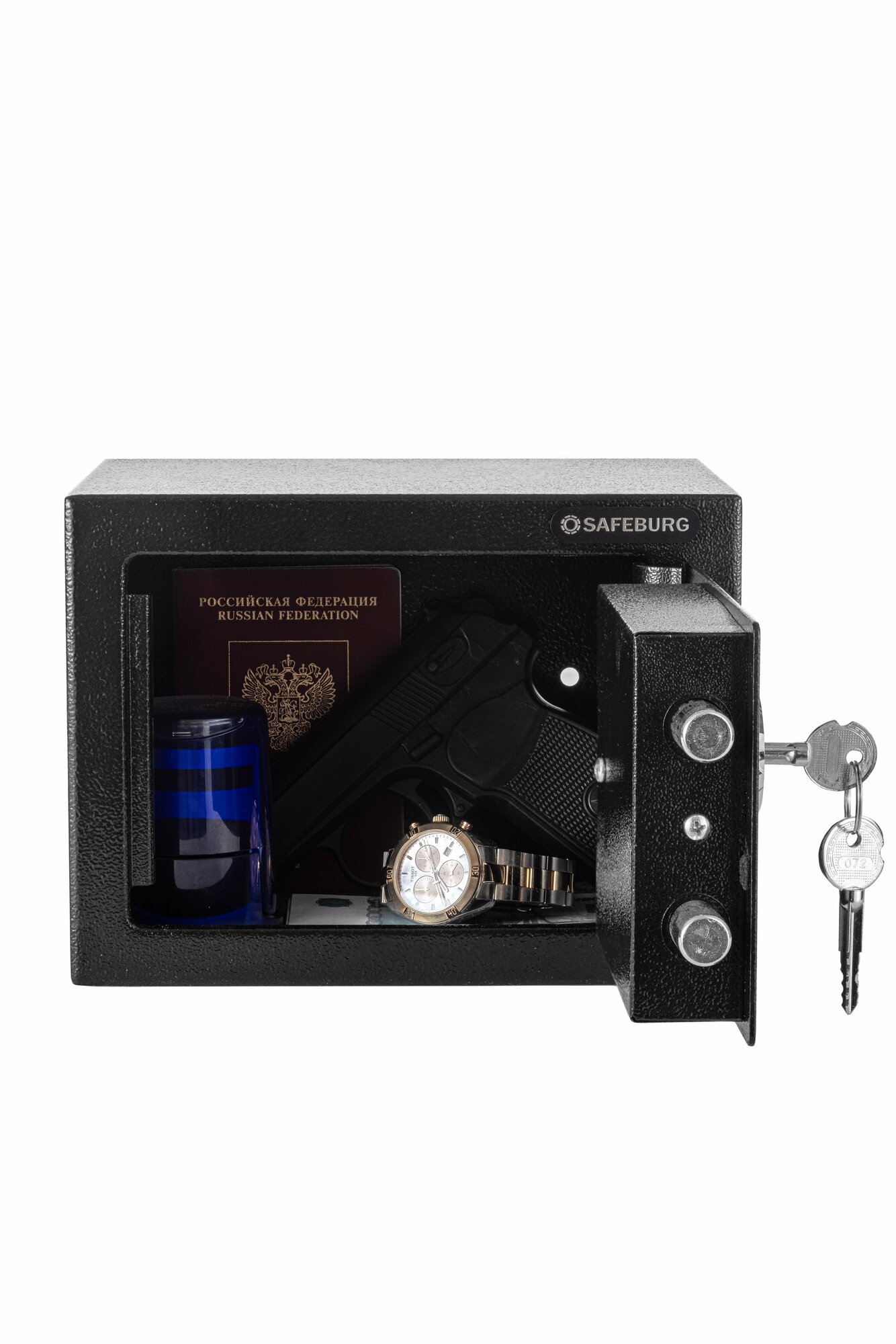 Купить Сейф для денег и документов SAFEBURG SB-170K BLACK крестовый ключевой замок, для дома/квартиры/офиса, 17х23х17 см