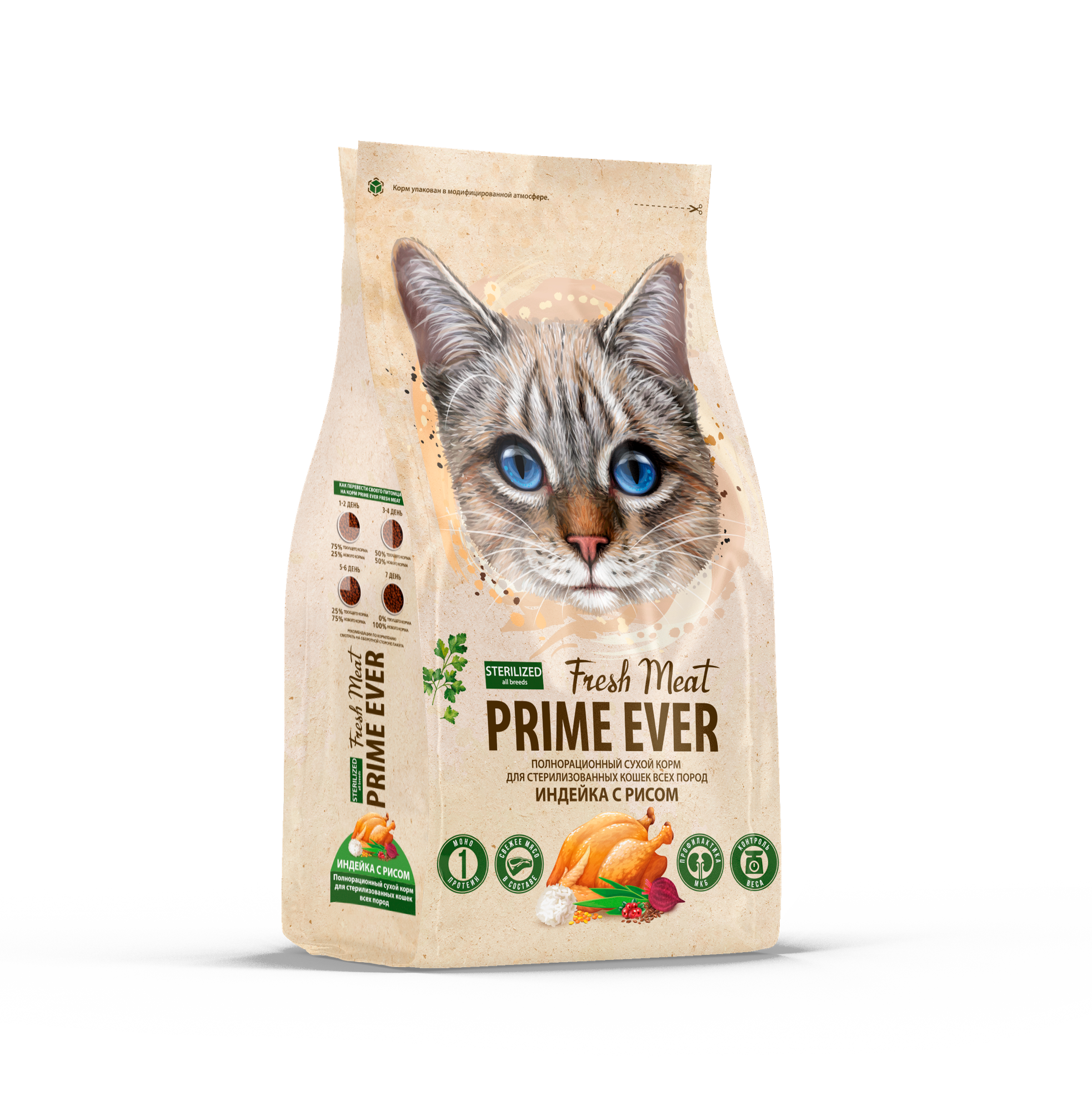 Сухой корм для стерилизованных кошек всех пород индейка с рисом Prime Ever Fresh Meat Sterilized Adult Cat, 7 кг интересное: