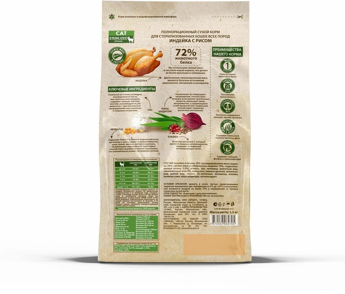 Prime Ever Fresh Meat Sterilized Adult Cat-Сухой корм для стерилизованных кошек всех пород индейка с рисом , 1,5 кг интересное: