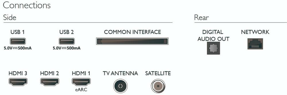 | Разъемы и интерфейсы | Ethernet - RJ-45 / USB Type-A / USB Type-A x 2 / вход HDMI / вход HDMI x 3 / выход аудио цифровой оптический / выход на наушники / композитный видеовход / слот CI x 2 / слот CI/CI+ |