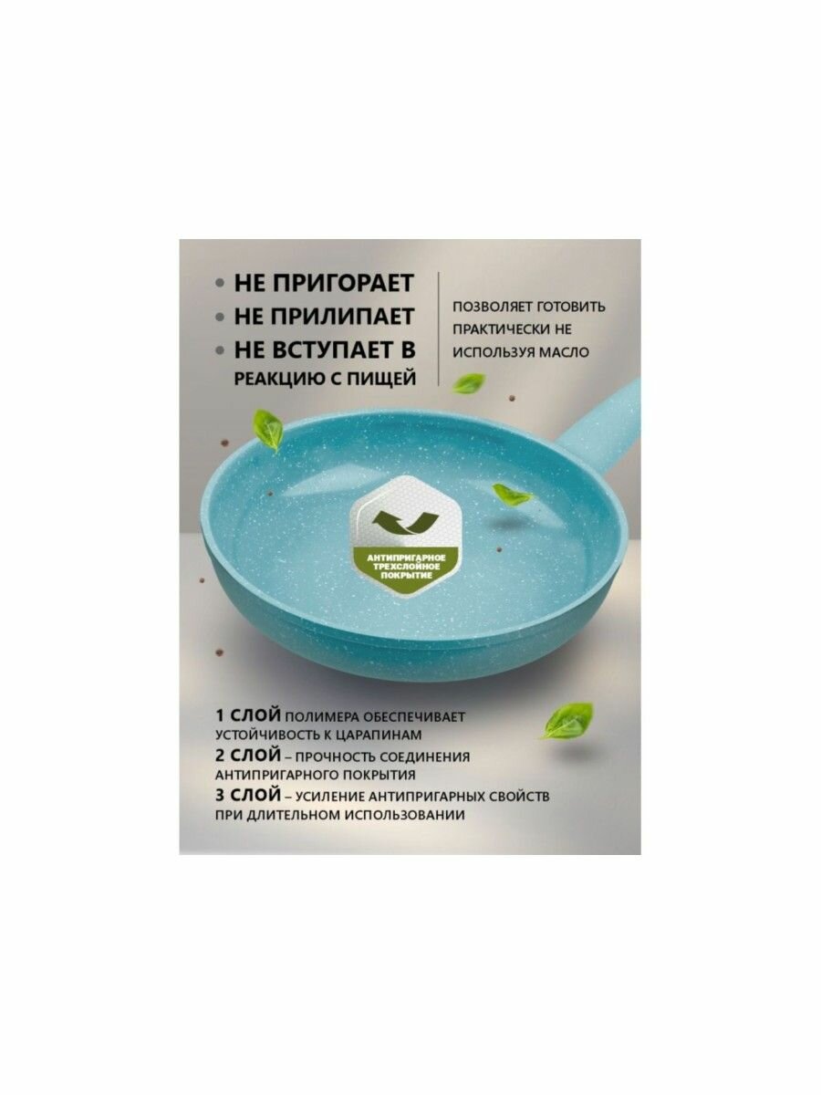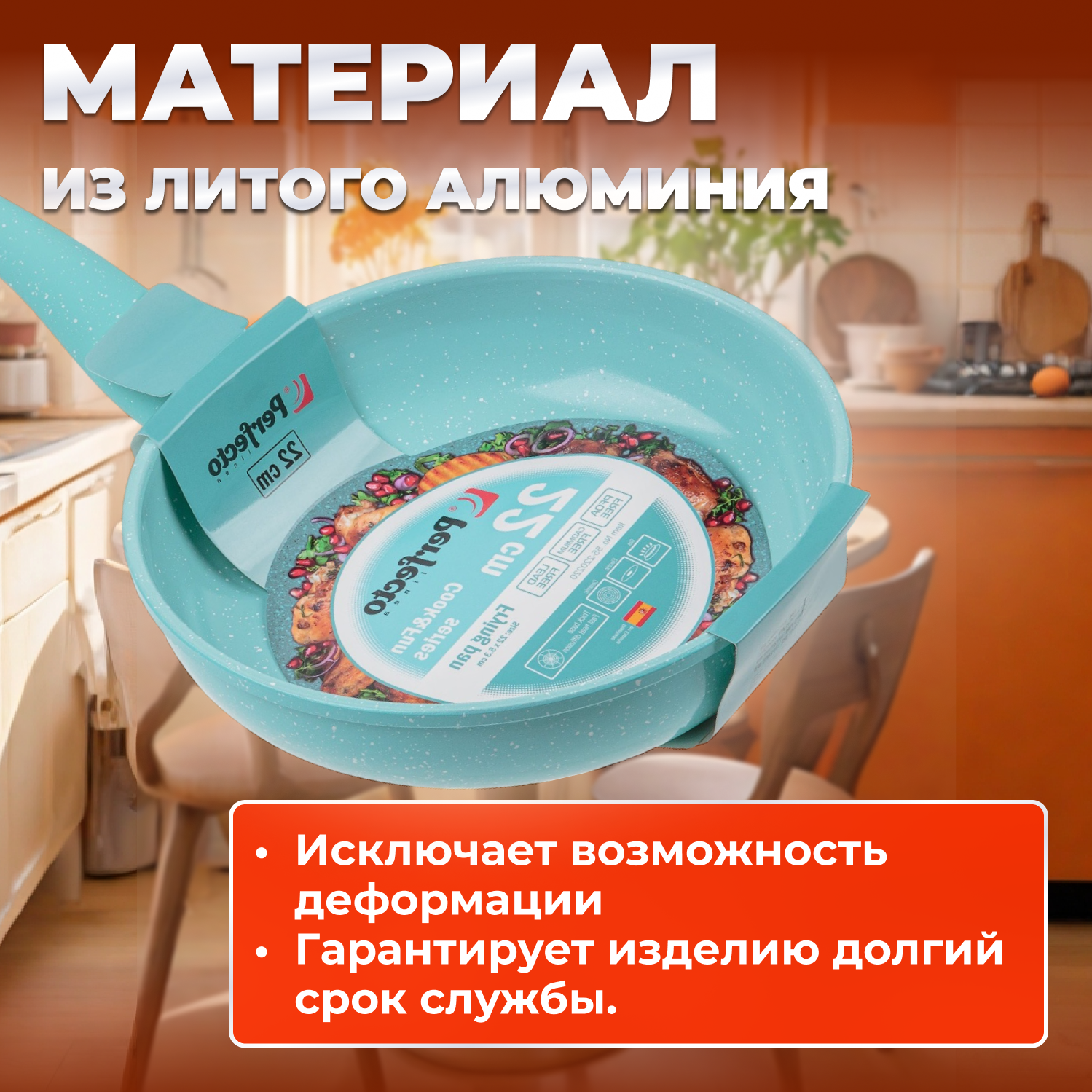 Сковорода алюминиевая PERFECTO LINEA Cook&Fun d24х5,5 см с антипригарным покрытием голубая (55-240220)