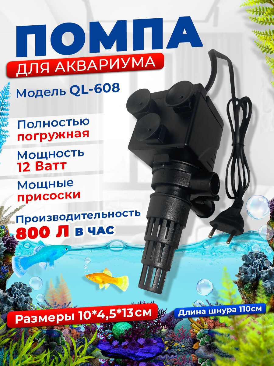 Помпа для аквариума QL-608 (800 литров в час, 12 Ватт, Hmax - 1 м.) интересное: