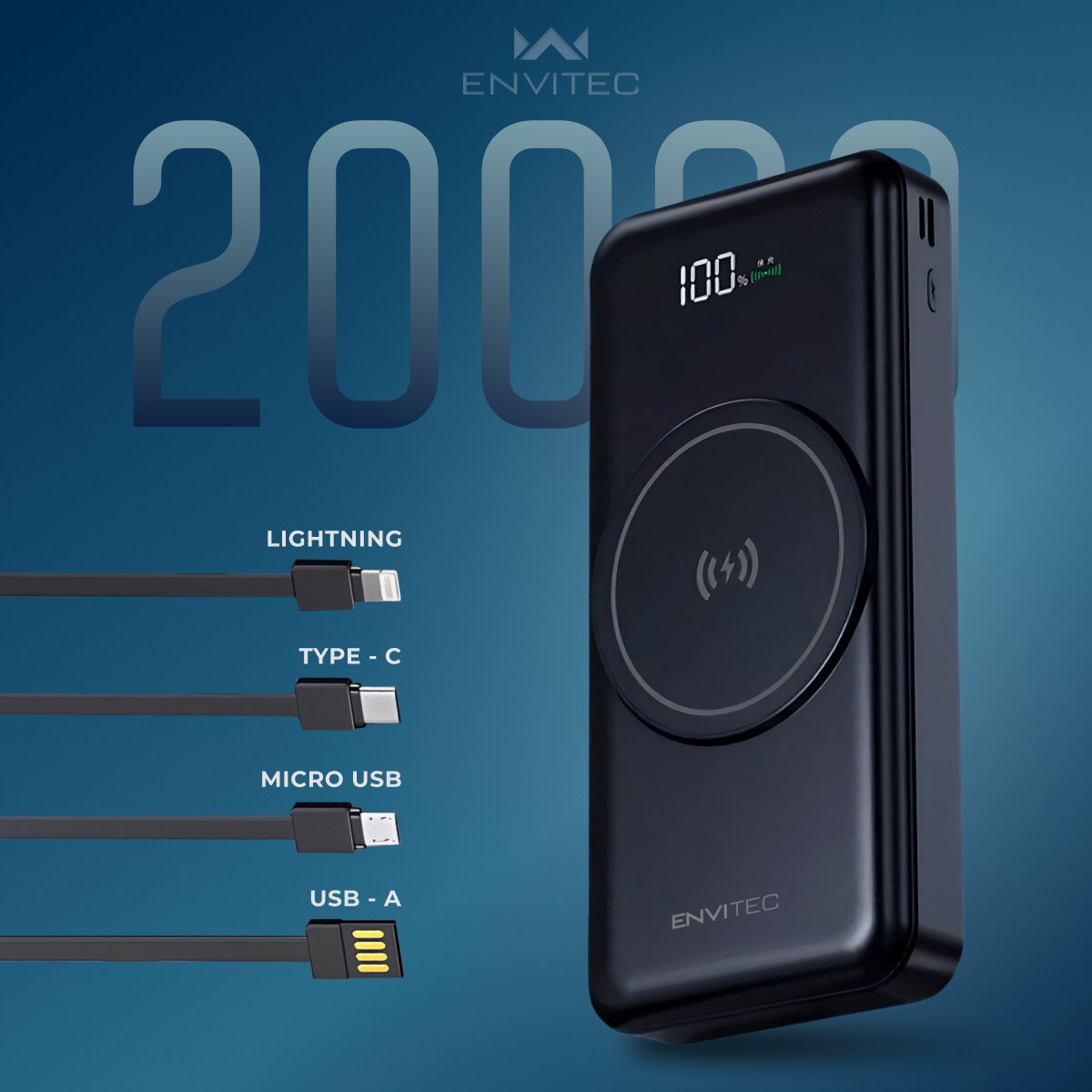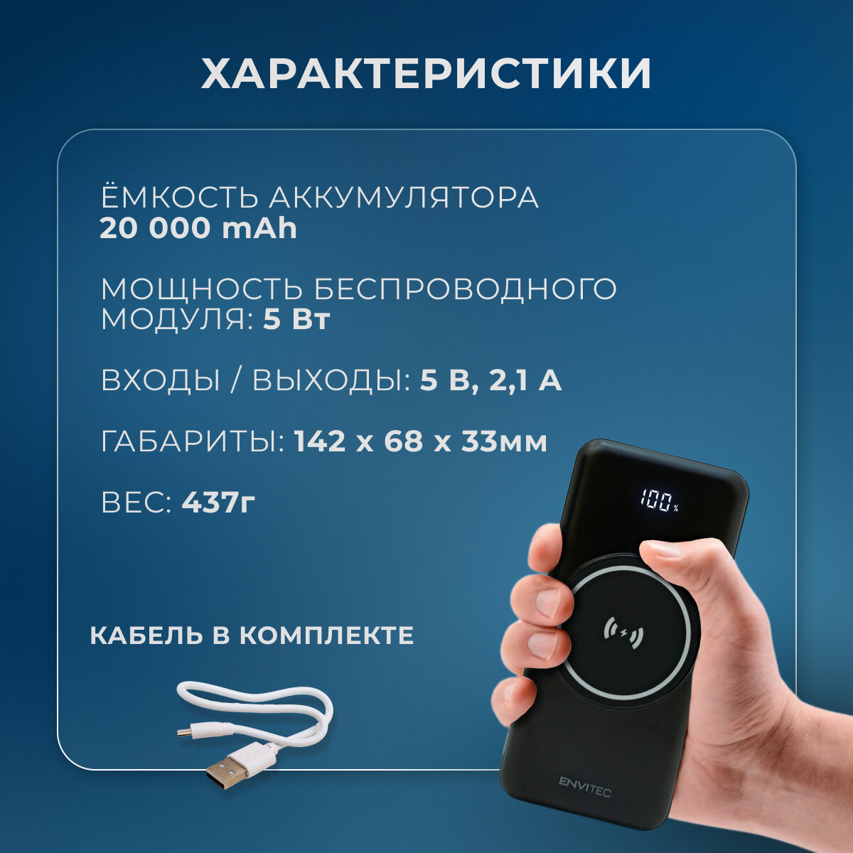Портативный аккумулятор EnviTec 20000 мАч с беспроводной зарядкой интересное: