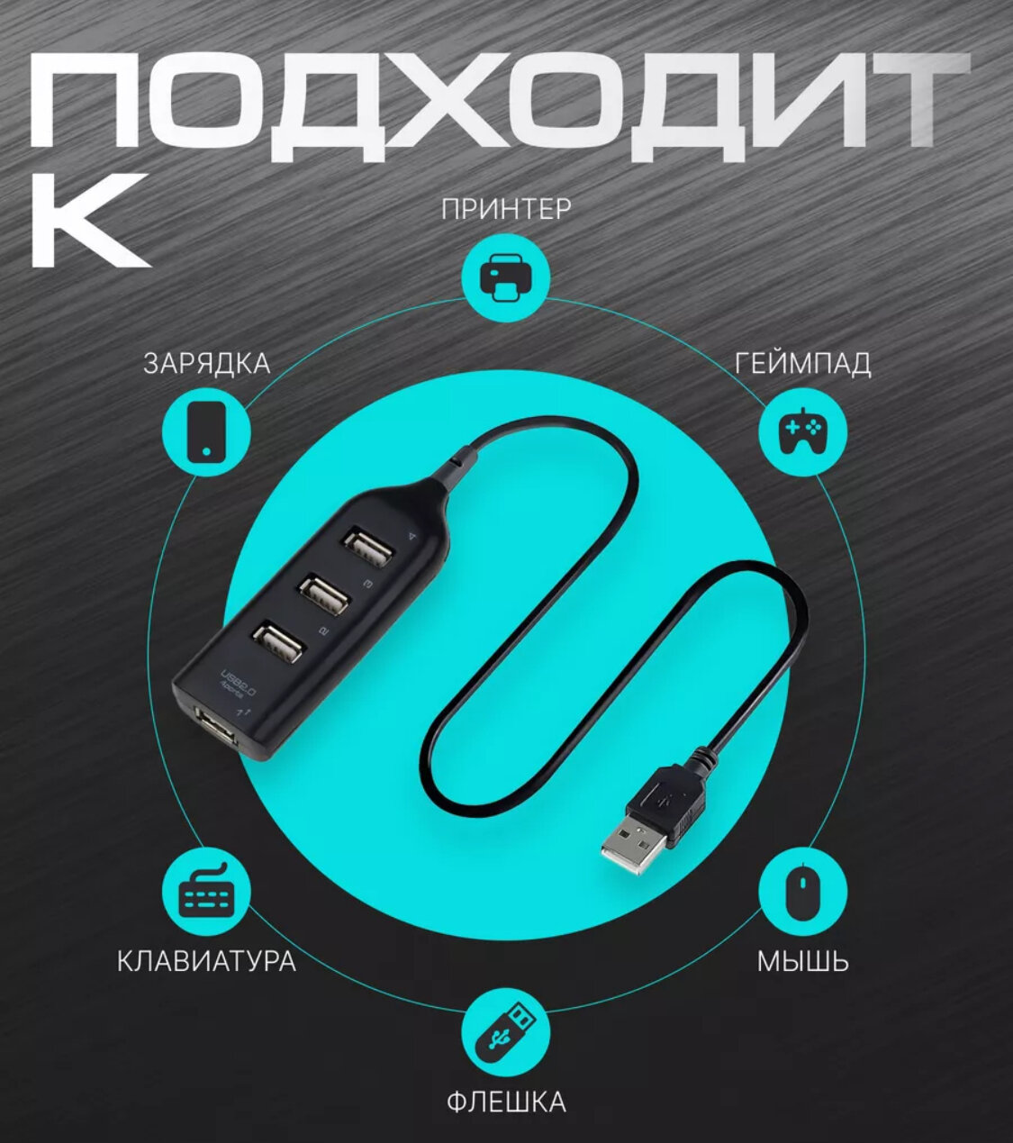 USB-концентратор USB 2.0 на 4 порта / HUB разветвитель USB на 4 порта/ ЮСБ разветвитель интересное: