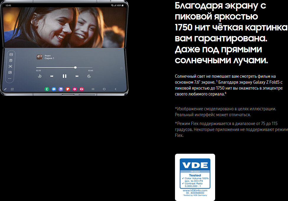 СохранитьСмартфон Samsung Galaxy Z Fold5 1TB Blue (синий эксклюзив) (SM-F946B/DS) интересное: