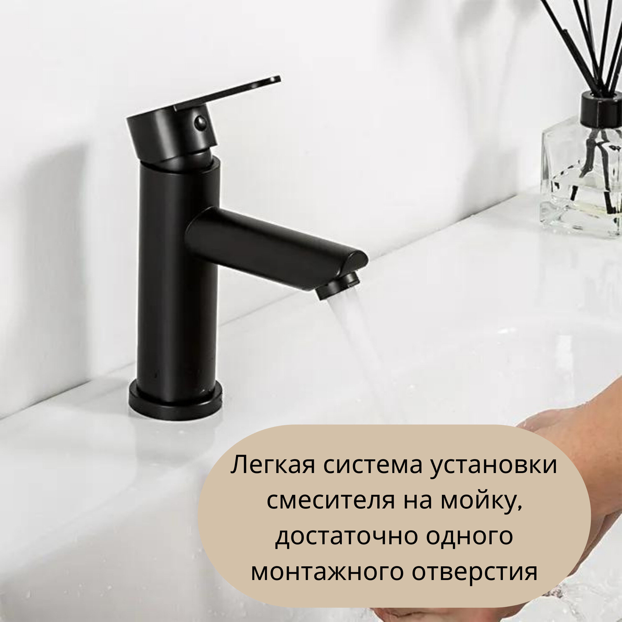 Смеситель для раковины в ванной, однорычажный, плоский, нержавеющая сталь, черный матовый интересное:
