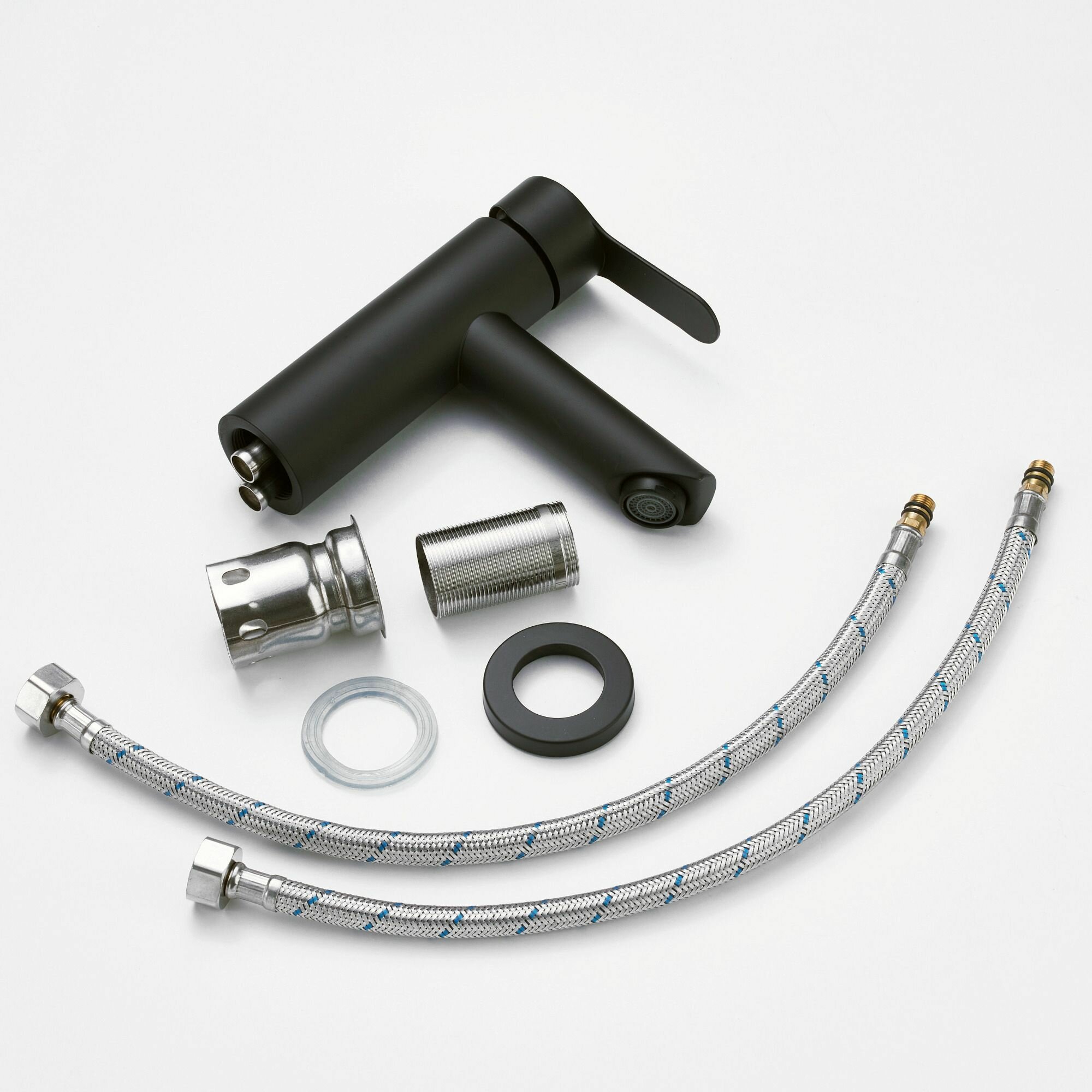 | Комплектация | Смеситель в защитном чехле, уплотнительное кольцо, прокладка, крепежная гайка с резьбовым цилиндром, гибкая подводка для горячей и холодной воды. Каждый элемент находится в защитном чехле, все элементы уложены в плотную заводскую коробку. |