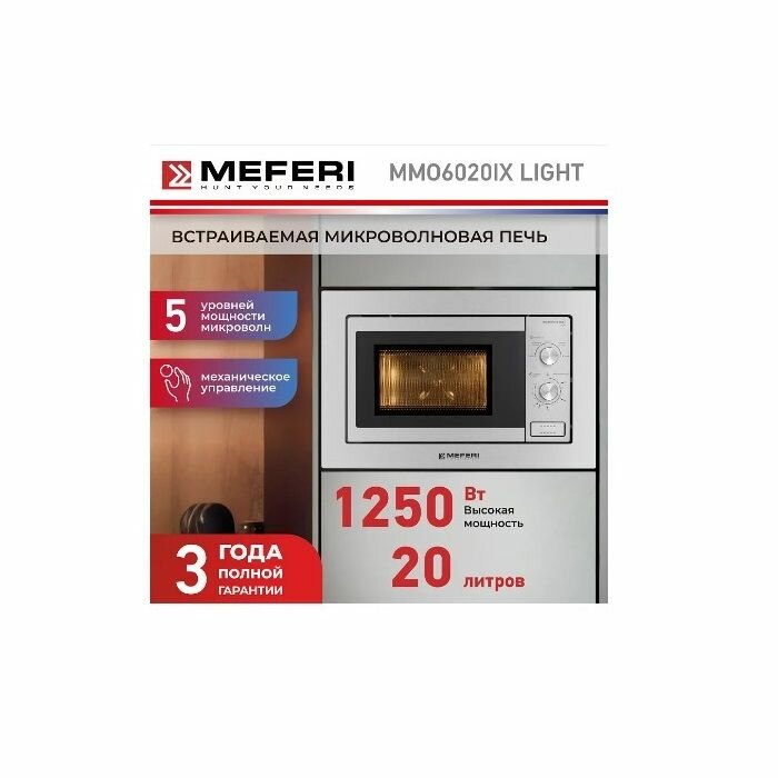 Встраиваемая микроволновая печь MEFERI MMO6020IX LIGHT, 20л, серебристая интересное: