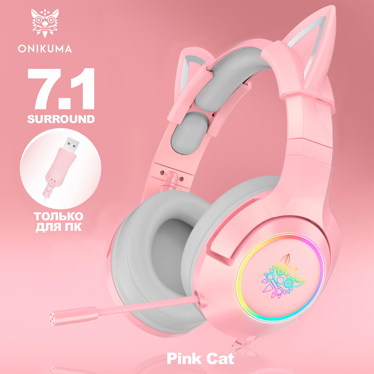 Купить Игровые наушники Onikuma K9-7.1 Pink Cat розовые с кошачьими ушками и подсветкой