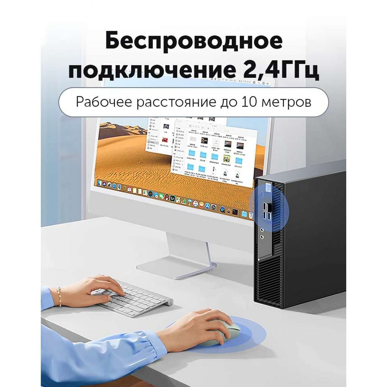 Беспроводная компьютерная мышь UGREEN MU105 (90671) 2.4G Wireless Mouse. Цвет: пыльный синий