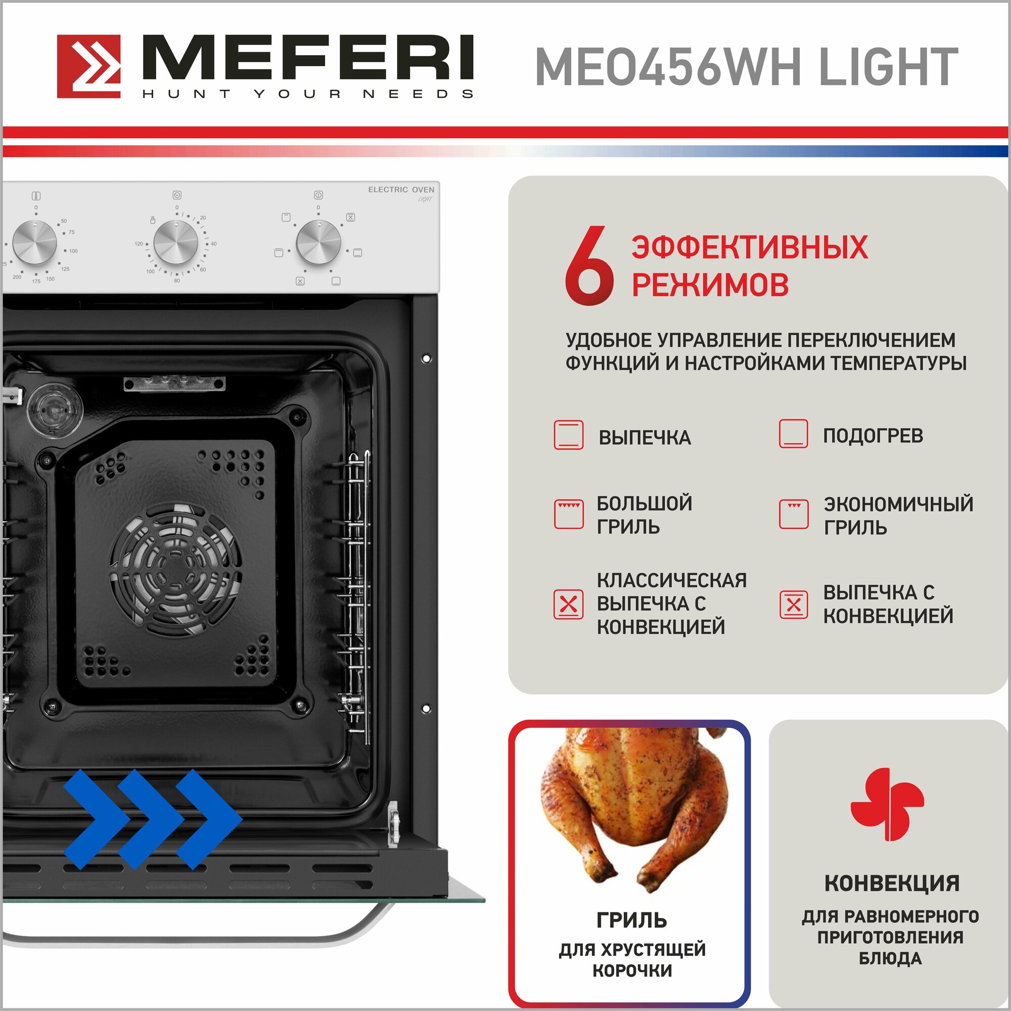 Встраиваемый электрический духовой шкаф MEFERI MEO456WH LIGHT, с грилем, белый интересное: