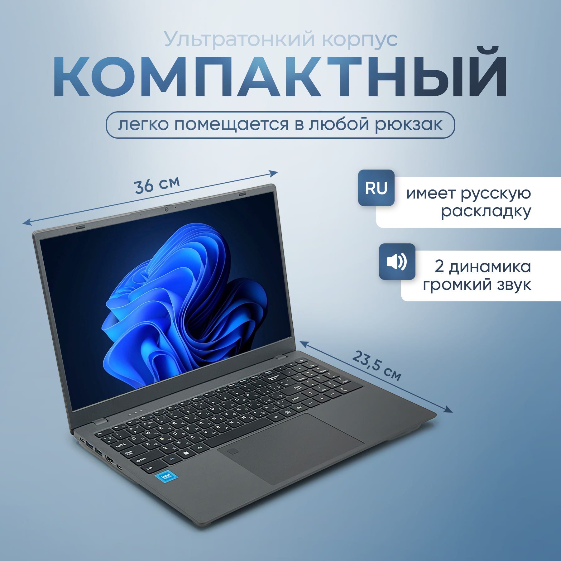 Купить Ноутбук 15.6, ультрабук для работы и учебы, Notebook Intel N95, RAM 12 ГБ, DDR5, SSD 512 ГБ, Intel UHD Graphics, Windows, русская раскладка