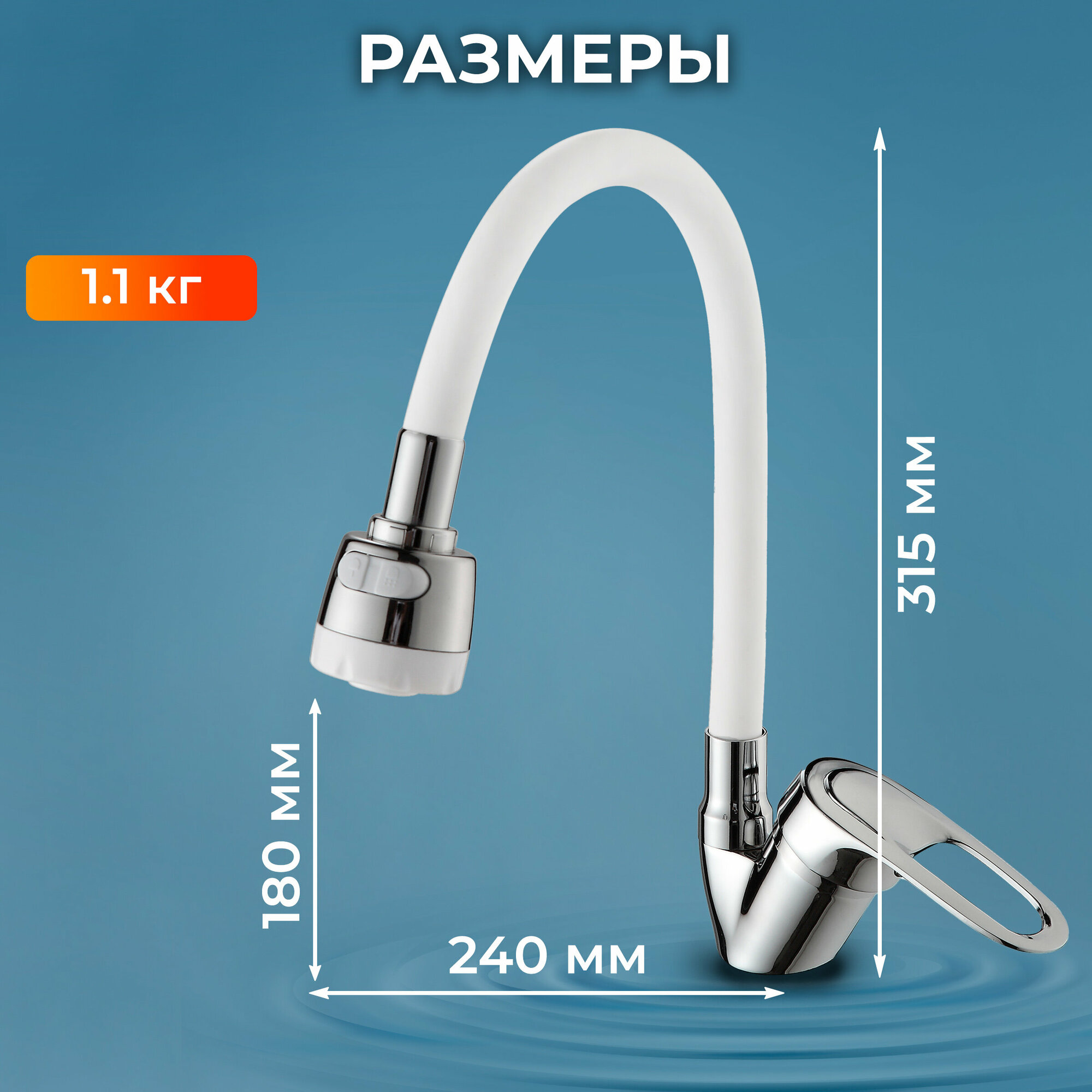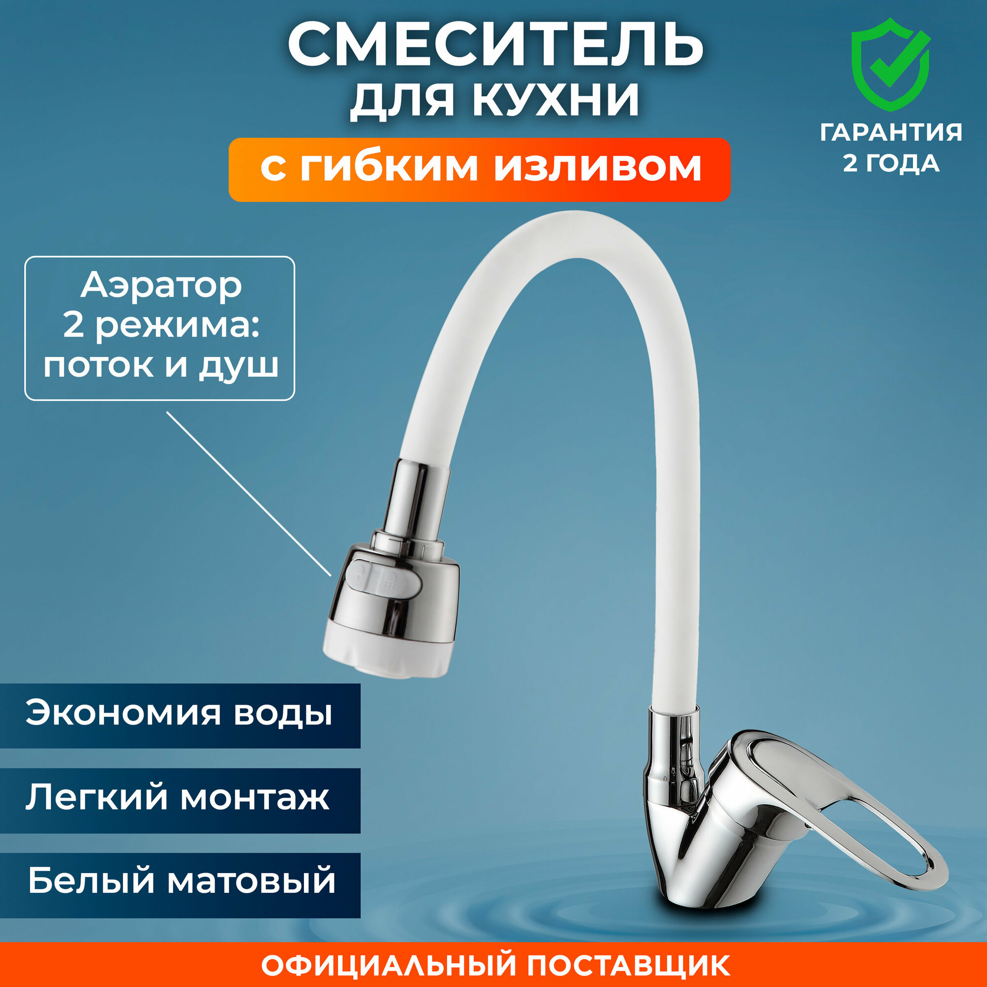 Смеситель для кухни с поворотным гибким изливом D40 серия 04 белый (NNF-0036) интересное: