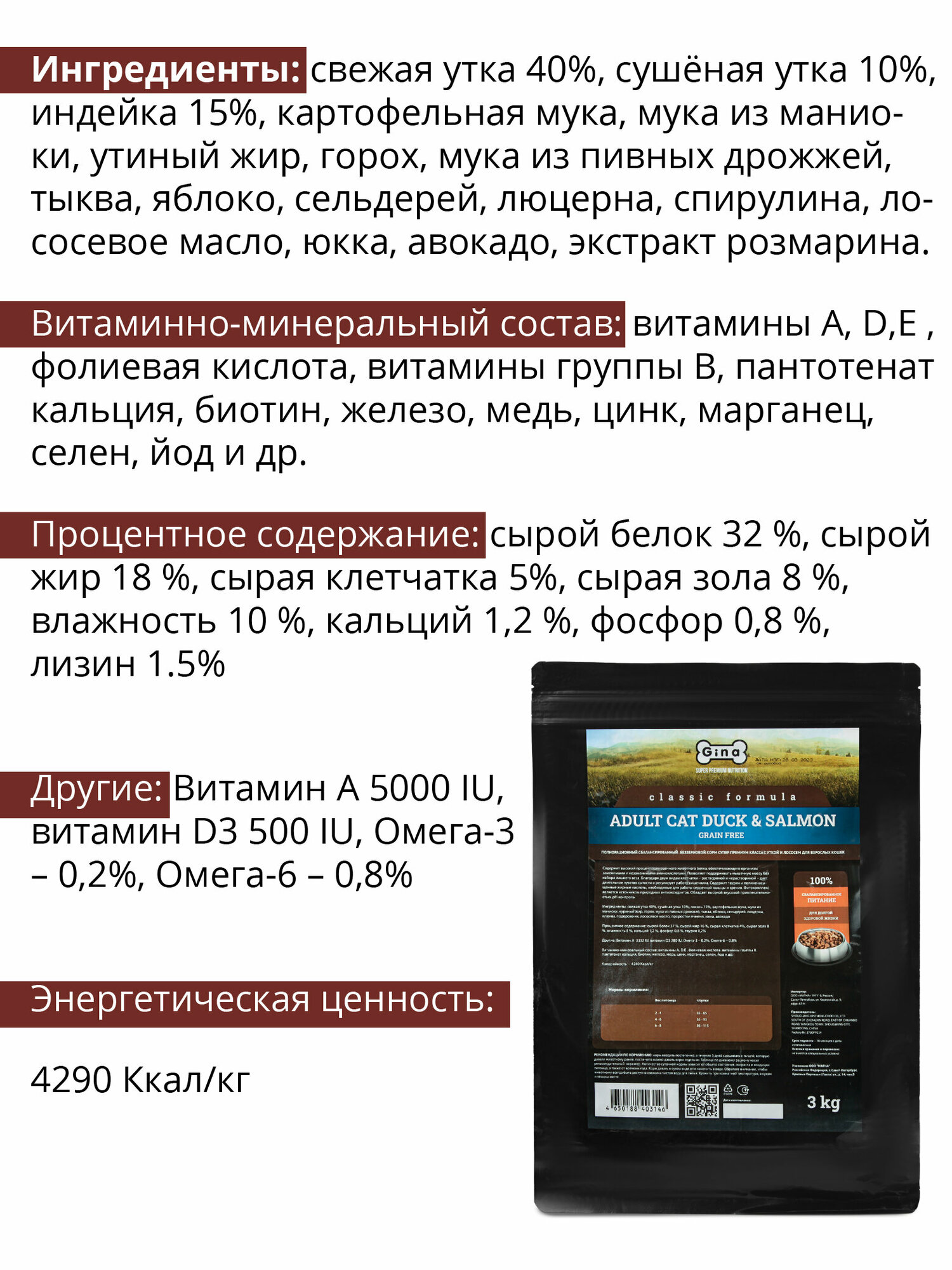 Корм для собак сухой Gina Classic Grain Free Adult Dog Duck&Turkey, беззерновой, утка, индейка 1кг интересное: