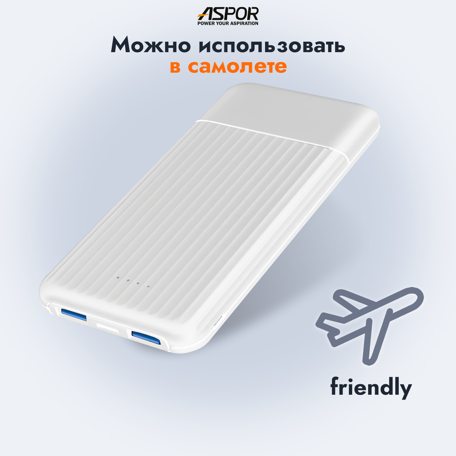 Портативный аккумулятор ASPOR A323 10000 мАч / Power bank для IOS, Android белый интересное: