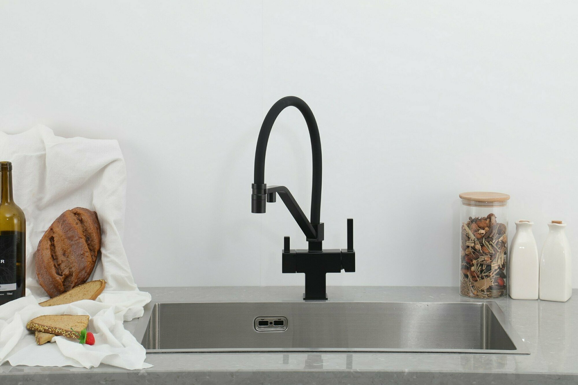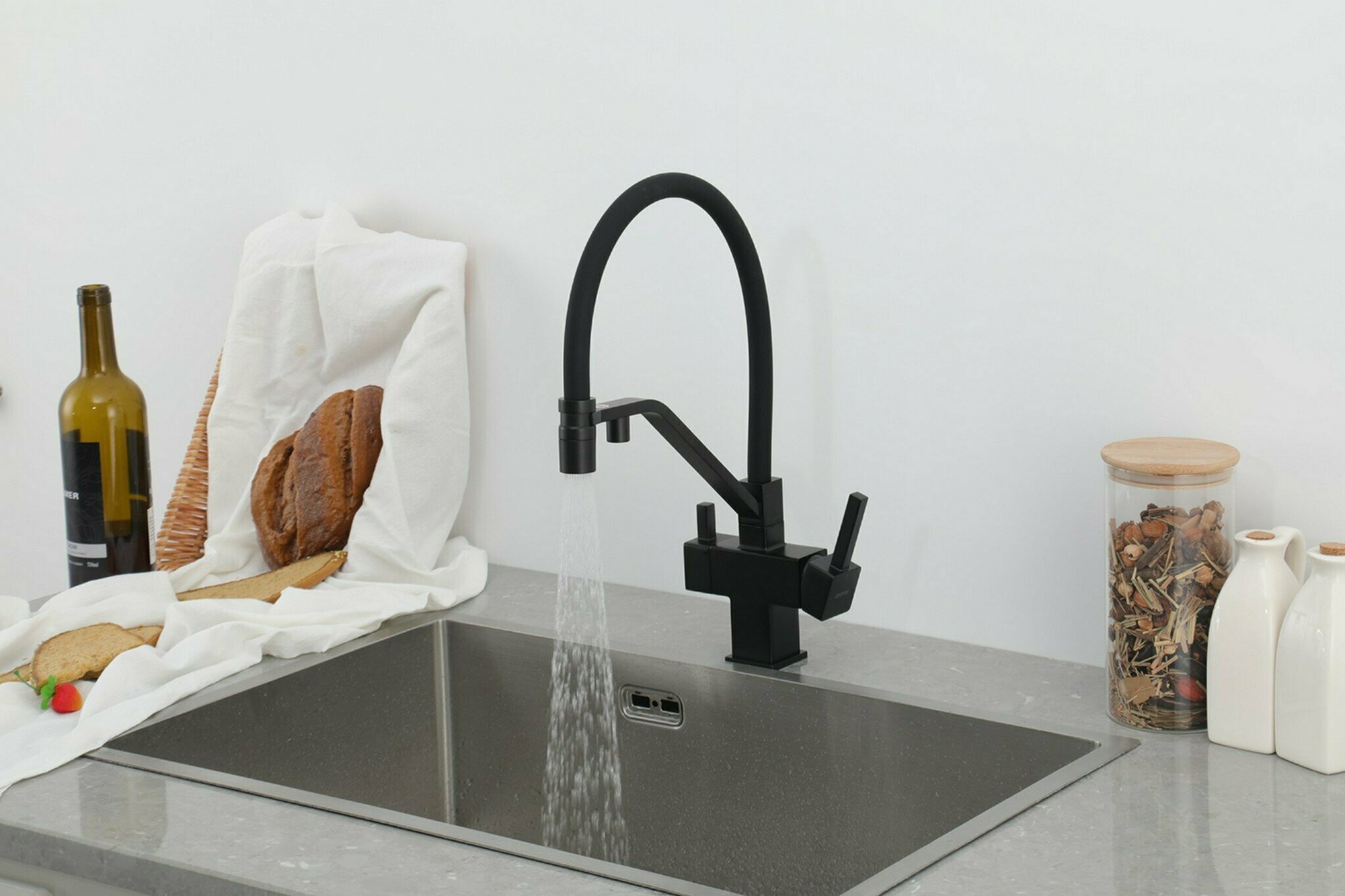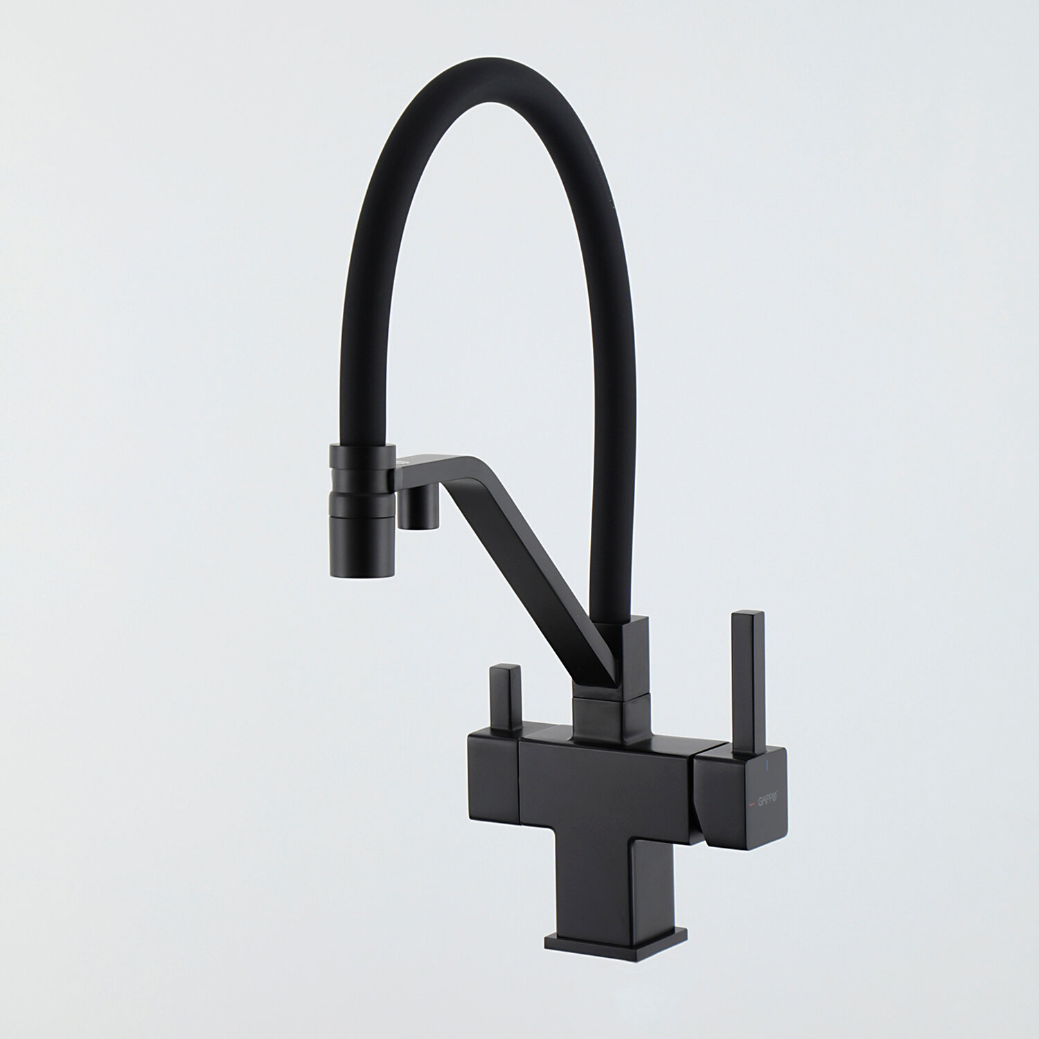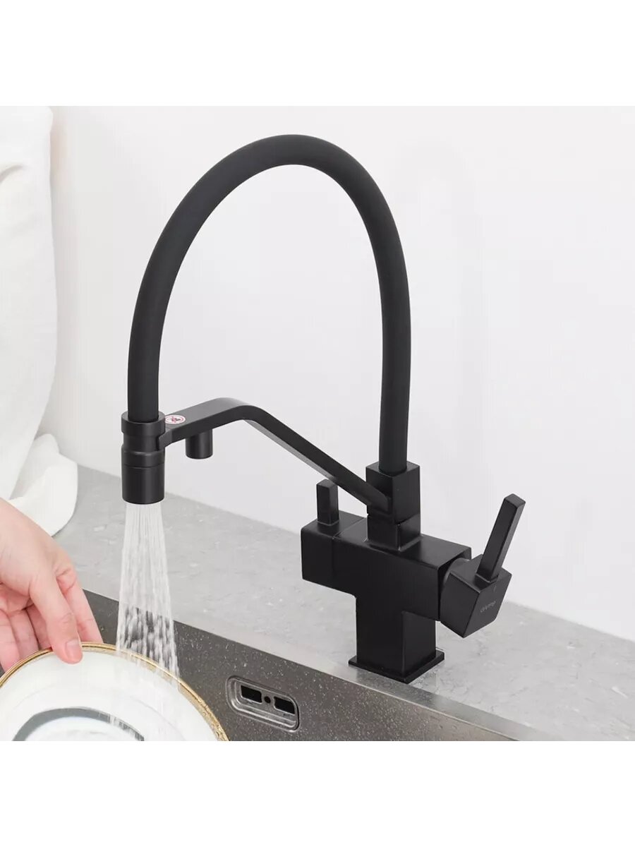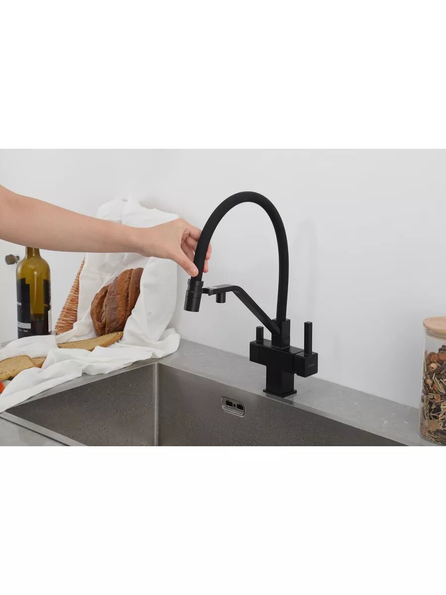 Смеситель для кухонной мойки Gappo G95-66 G4395-66 с подключением фильтра питьевой воды и гибким изливом, черный