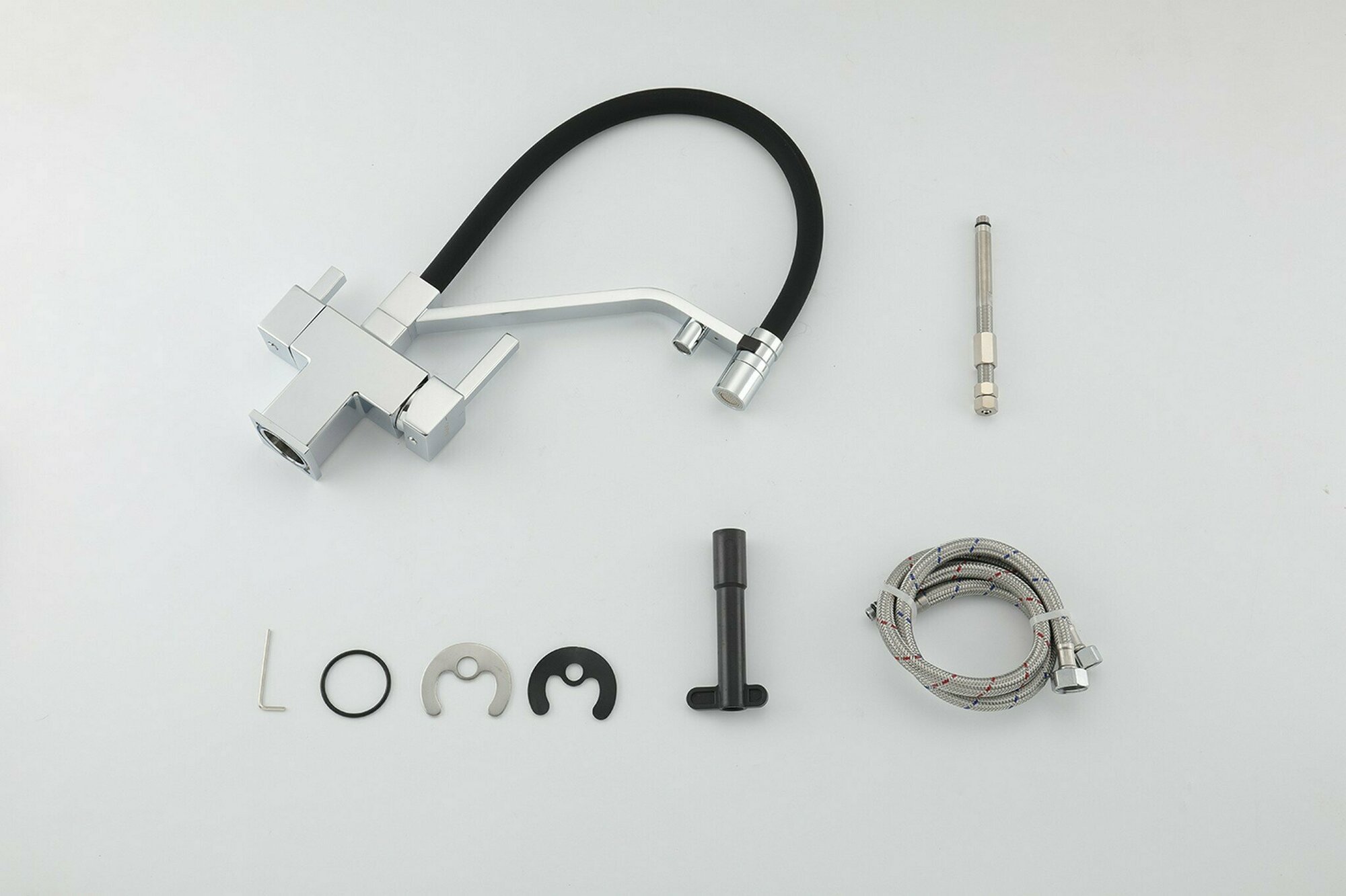 | Комплектация | Смеситель, комплект подводок 50 см, крепление шпилька |
