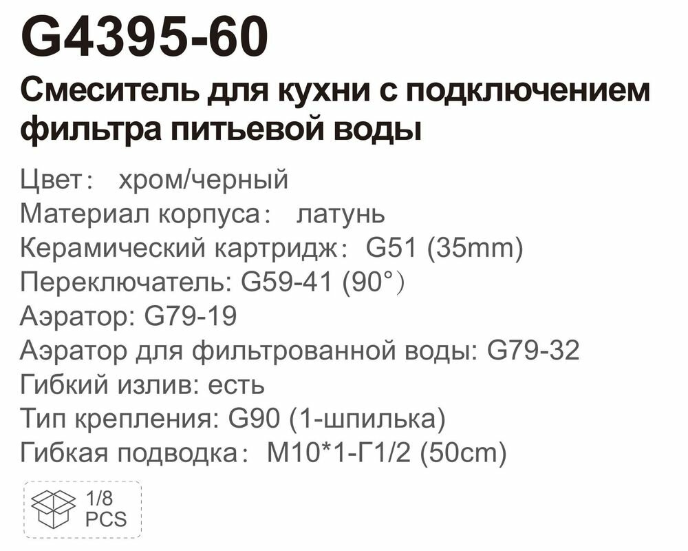 Смеситель для кухни Gappo G4395-60 с подключением фильтра, черный/хром