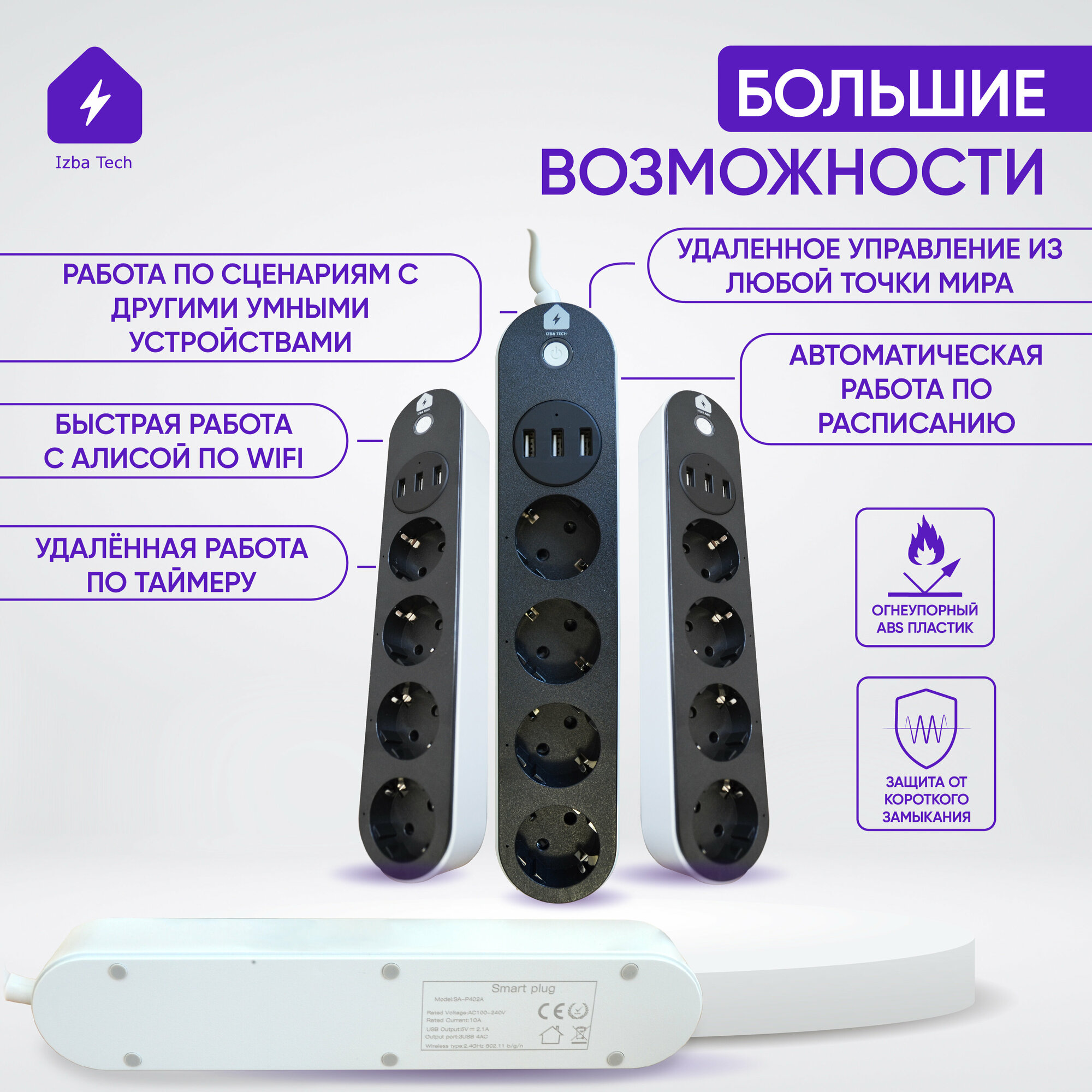 Умный сетевой удлинитель фильтр для Яндекс Алисы с WIFI и USB