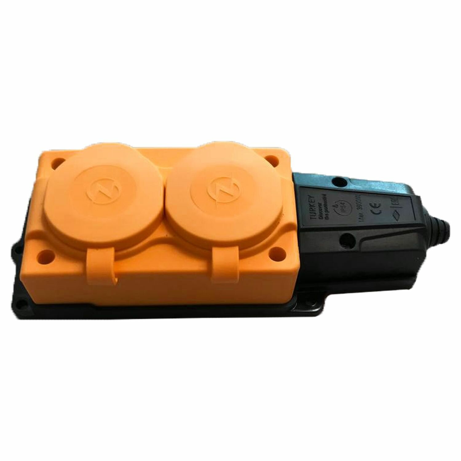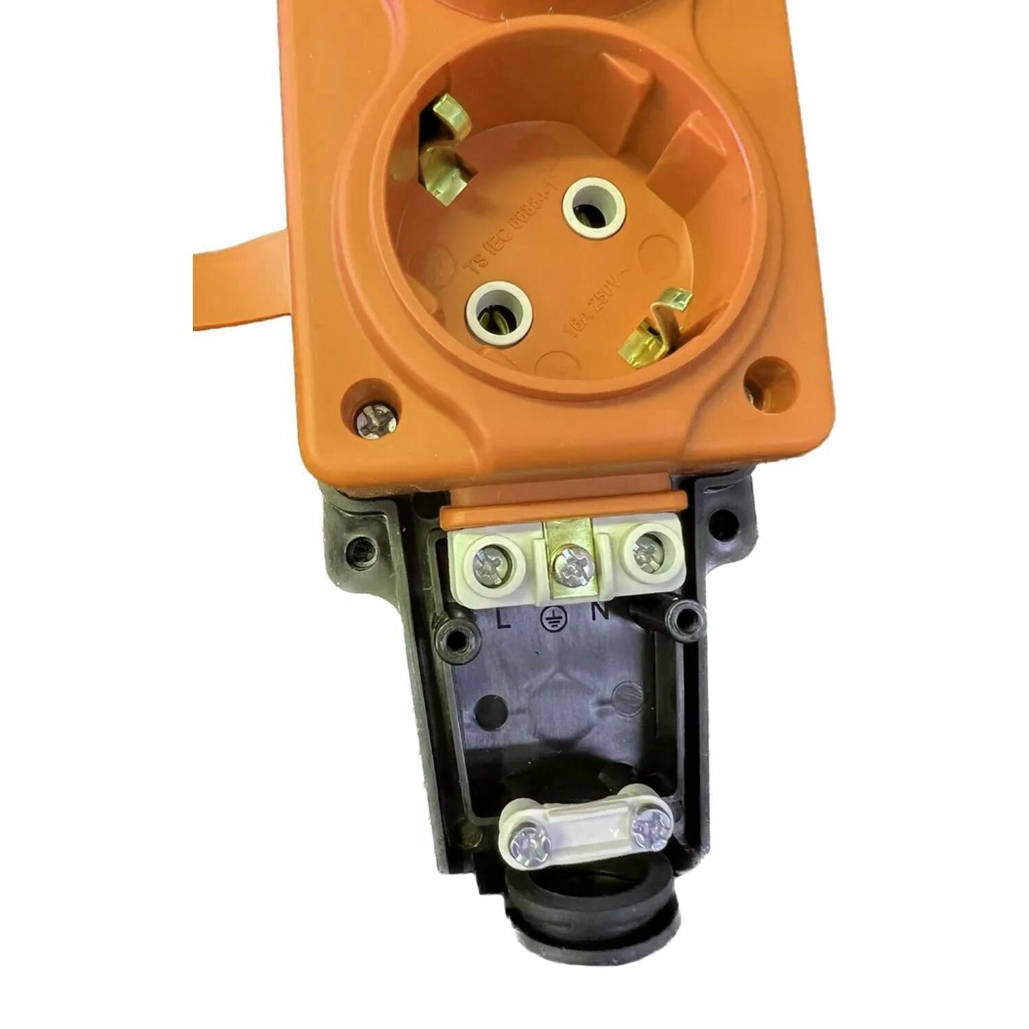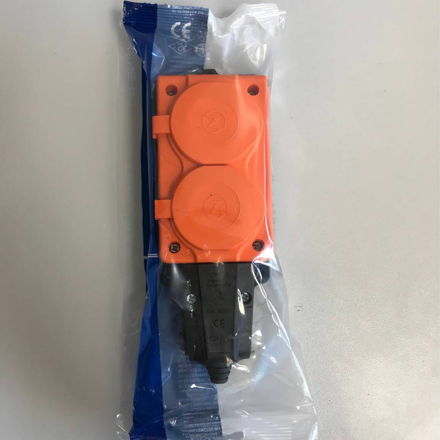 Купить Колодка электрическая для удлинителя колодка двойная NE-AD 2-нг с/з с крышками 16А, IP54, оранжевый/черный (каучук)