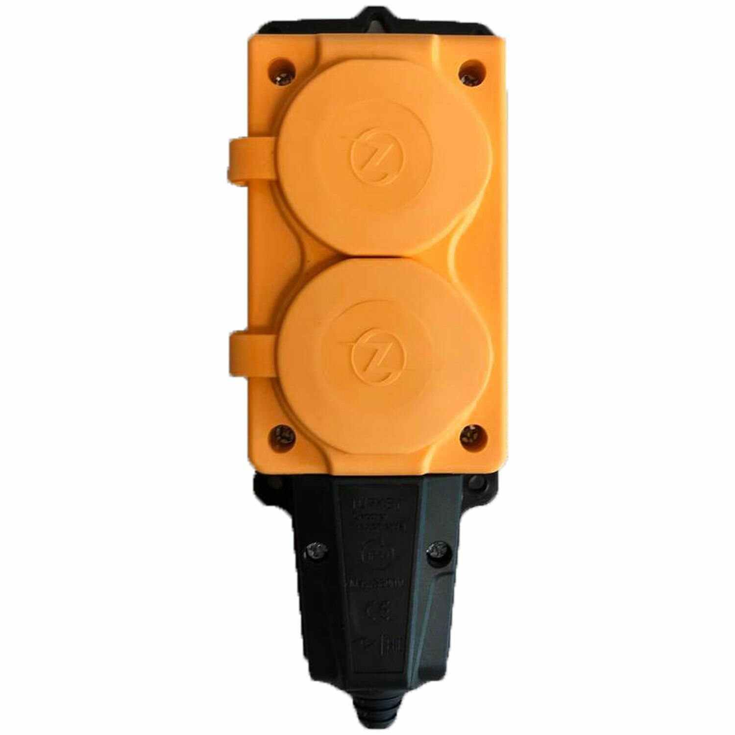 Колодка электрическая для удлинителя колодка двойная NE-AD 2-нг с/з с крышками 16А, IP54, желтый/черный (каучук)
