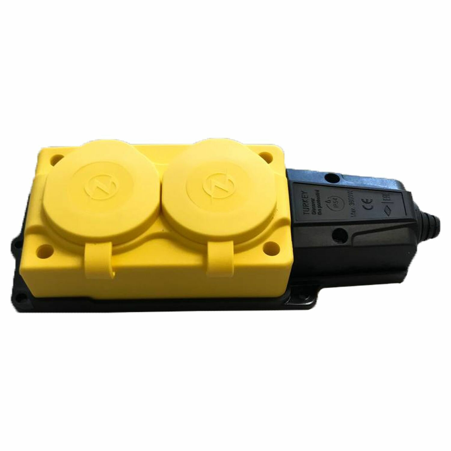 Купить Колодка электрическая для удлинителя колодка двойная NE-AD 2-нг с/з с крышками 16А, IP54, желтый/черный (каучук)