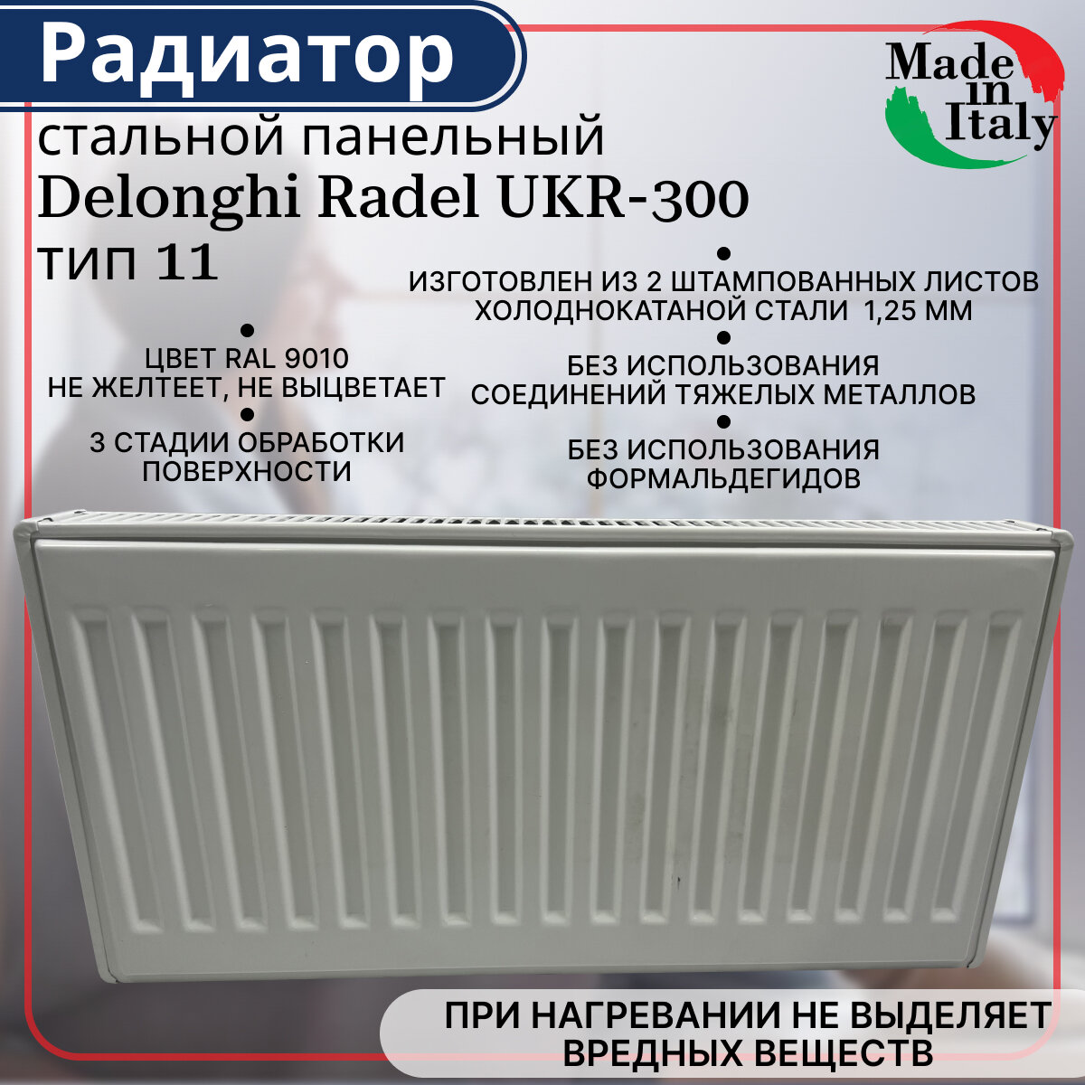 Радиатор стальной панельный, боковое подключение, Delonghi Radel-UKR, тип 11, 300 х 1000 интересное: