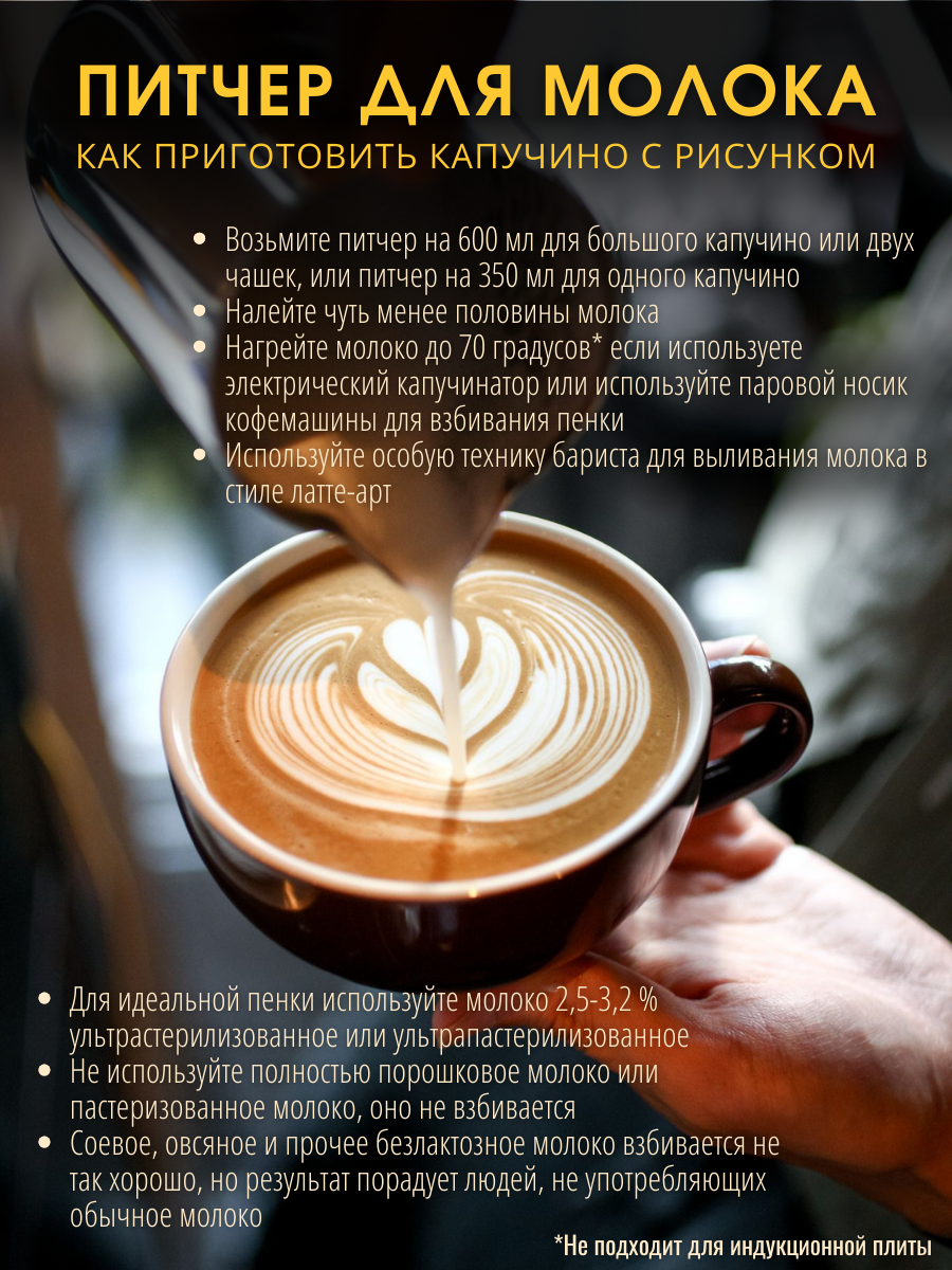 Питчер для молока 600 мл IlleChef с двойной шкалой молочник металлический для кофе, нержавеющая сталь интересное: