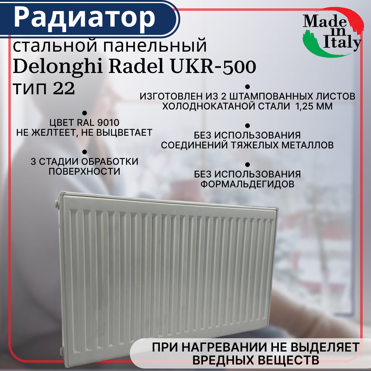 Радиатор стальной панельный, боковое подключение, Delonghi Radel-UKR, тип 22, 500 х 900 интересное:
