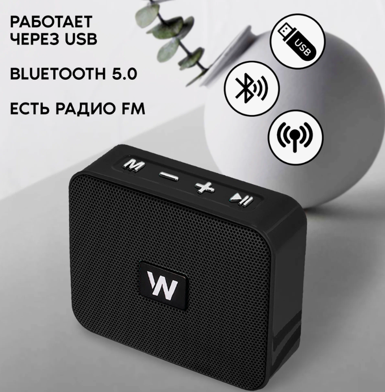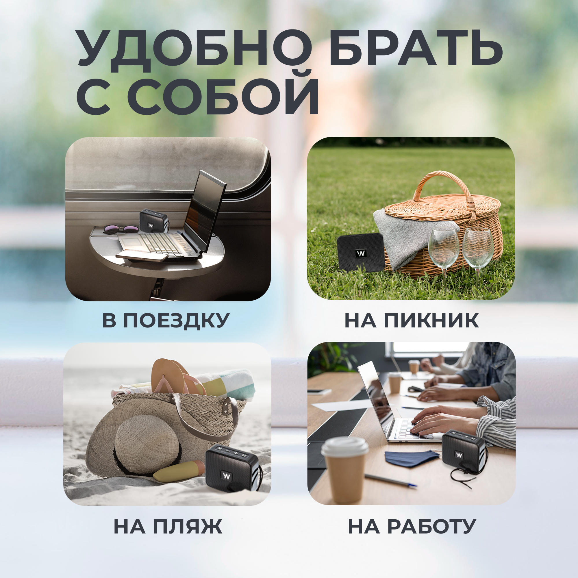 СохранитьБеспроводная портативная колонка Bluetooth, WALKER, WSP-100, музыкальная переносная акустическая система блютуз для компьютера и телевизора, черная интересное: