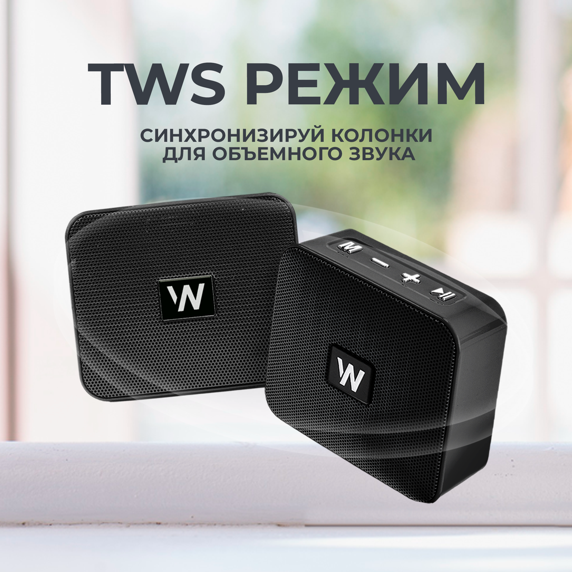 Беспроводная портативная колонка Bluetooth, WALКЕR, WSP-100, музыкальная переносная акустическая система блютуз для компьютера и телевизора, черная