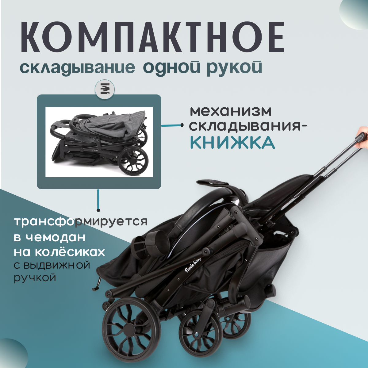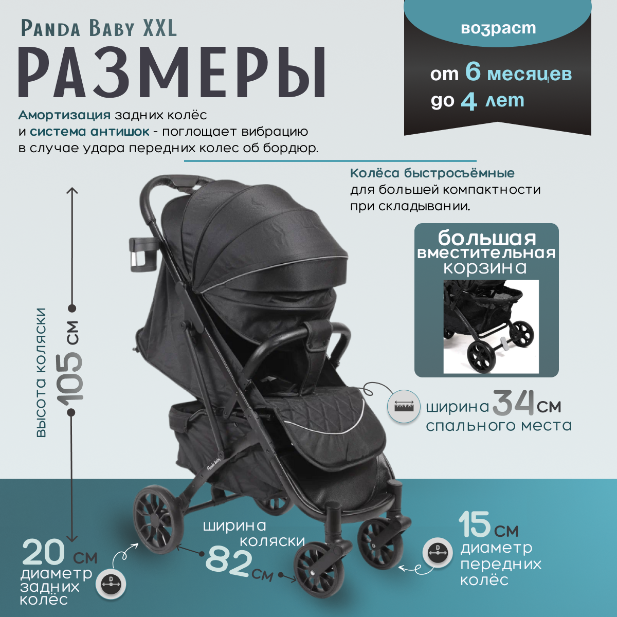 Детская прогулочная коляска Panda Baby XXL черная интересное: