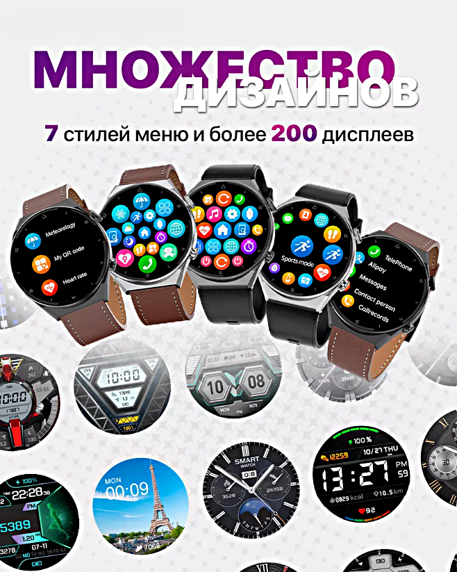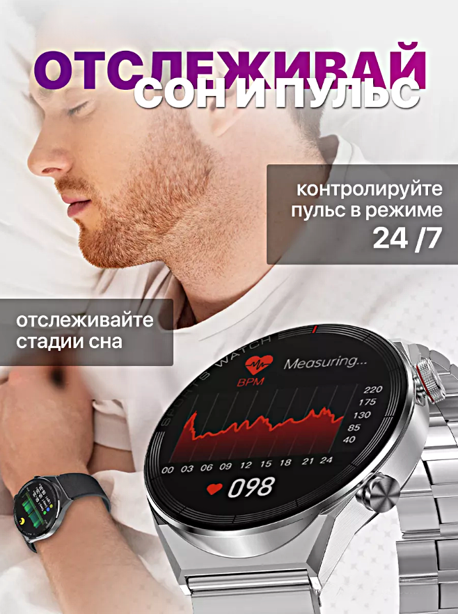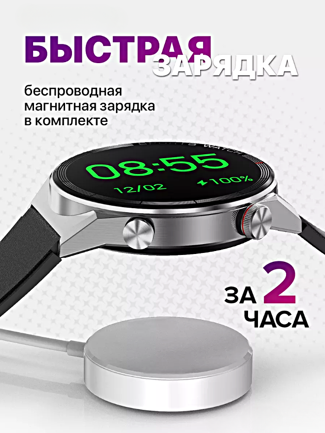 Комплектация умные часы DT3Max 46 мм - 1 шт., силиконовый ремешок - 1 шт., ремешок из искусственной кожи - 1 шт., металлический ремешок - 1 шт., беспроводное зарядное магнитное устройство - 1