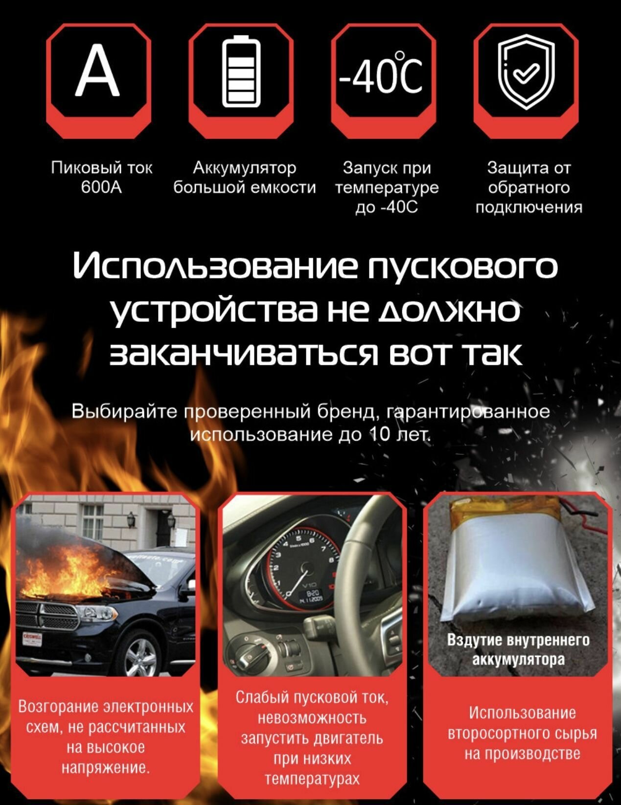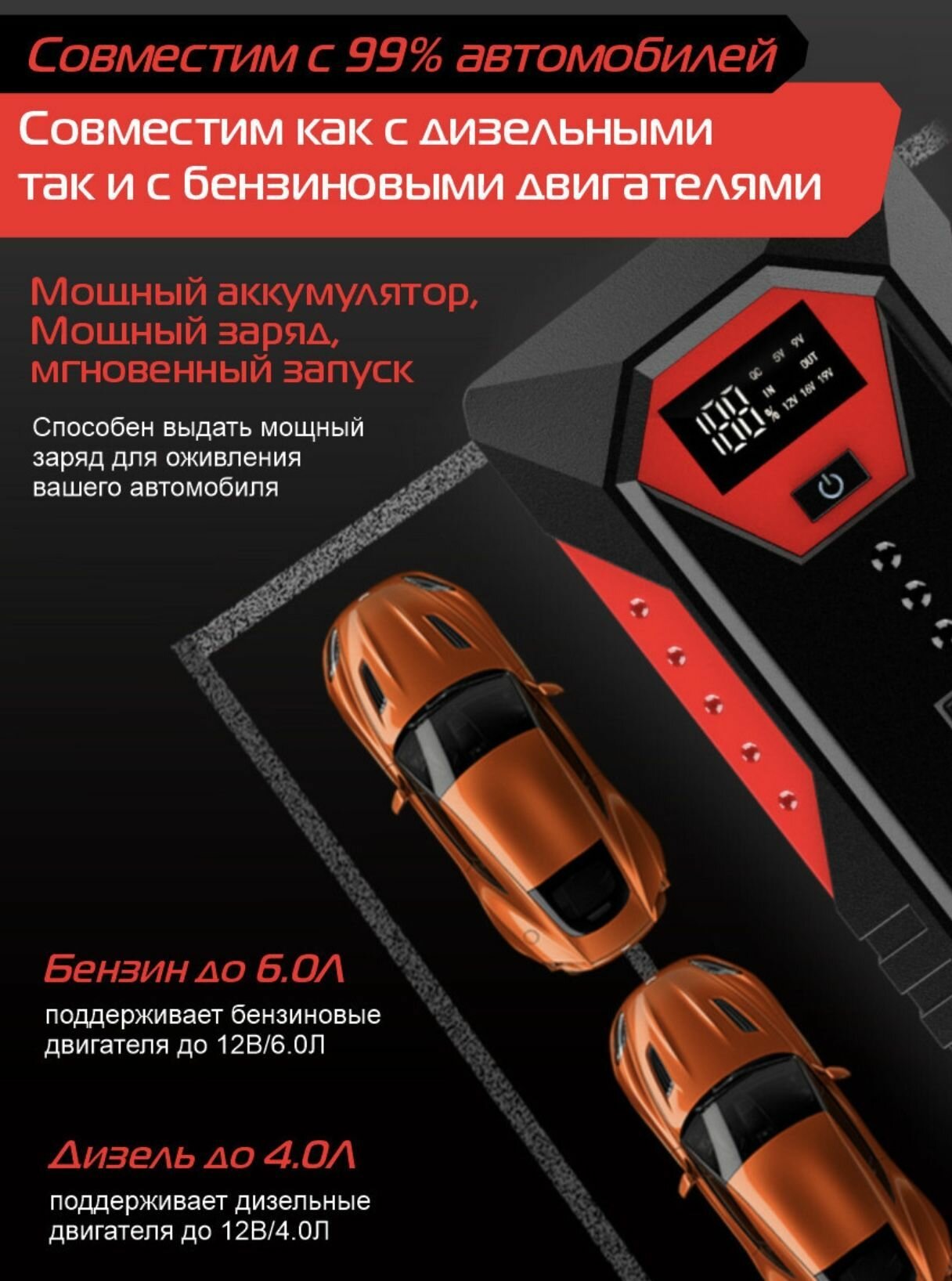 Автомобильное пусковое портативное устройство бустер GKFLY 18000mAh 1200A интересное: