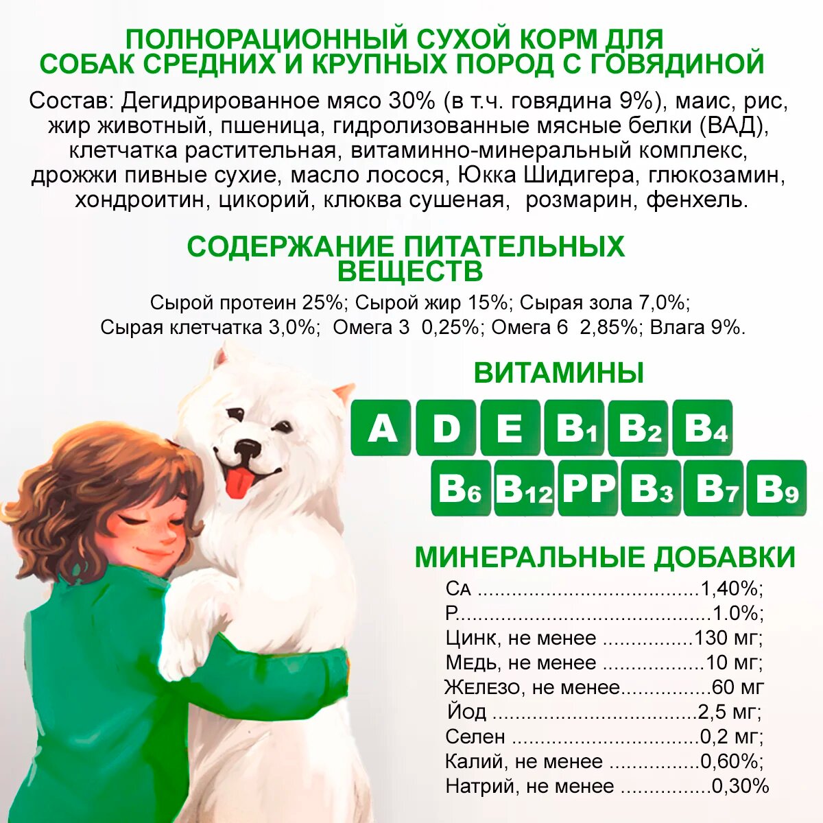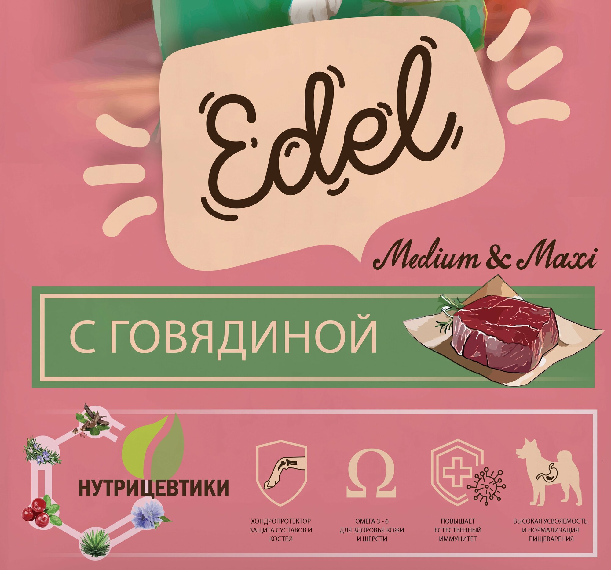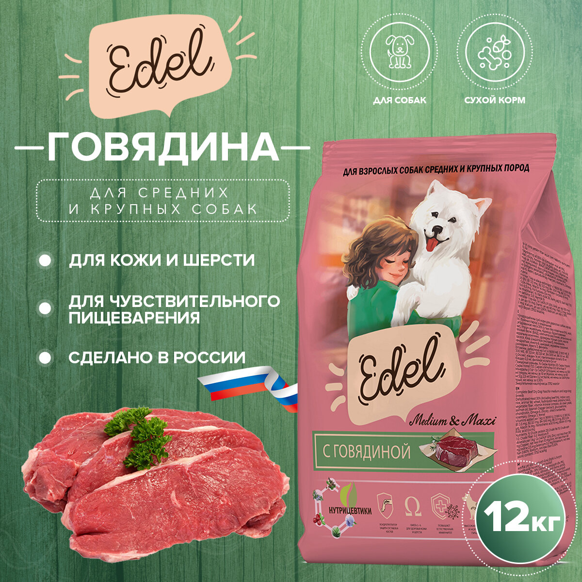 Корм сухой для собак средних и крупных пород Edel с говядиной, 12 кг Эдель