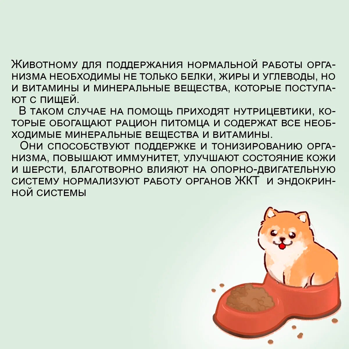 | Возраст животного | взрослые (1-6 лет) / пожилые (7+) / щенки (до 1 года) |