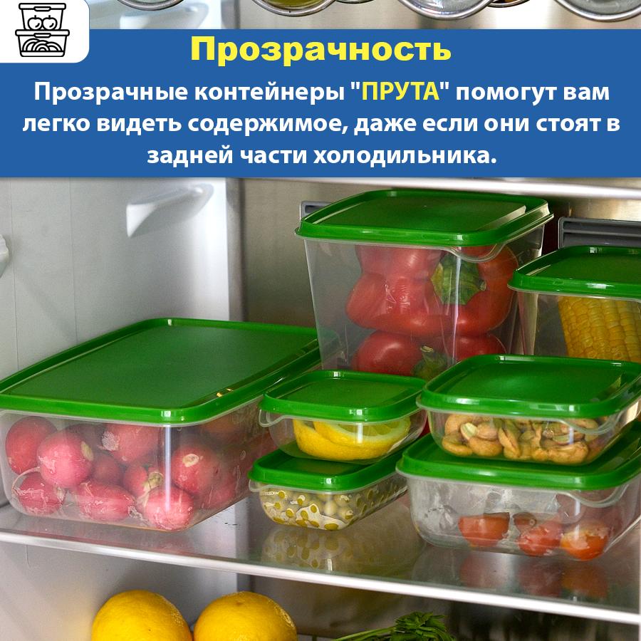 | Плюсы: | Много контейнеров по адекватной стоимости. Порядок в холодильнике. |