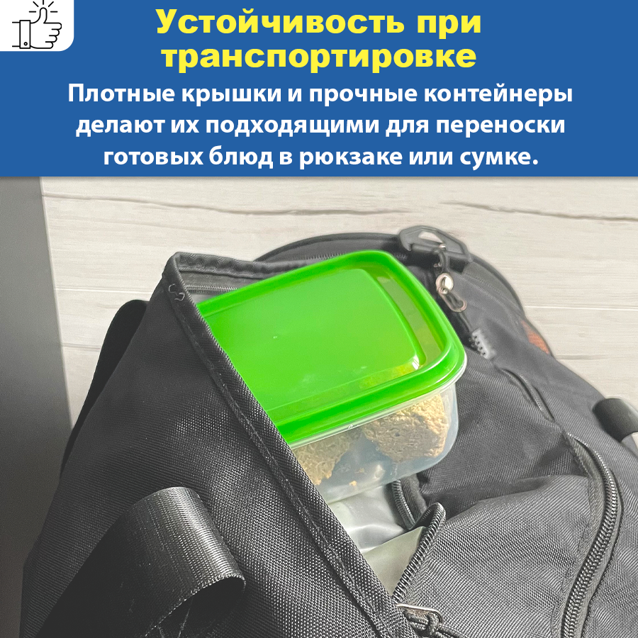 Очень удобно использовать в дороге, брать с собой в машину. Закрываются герметично. |