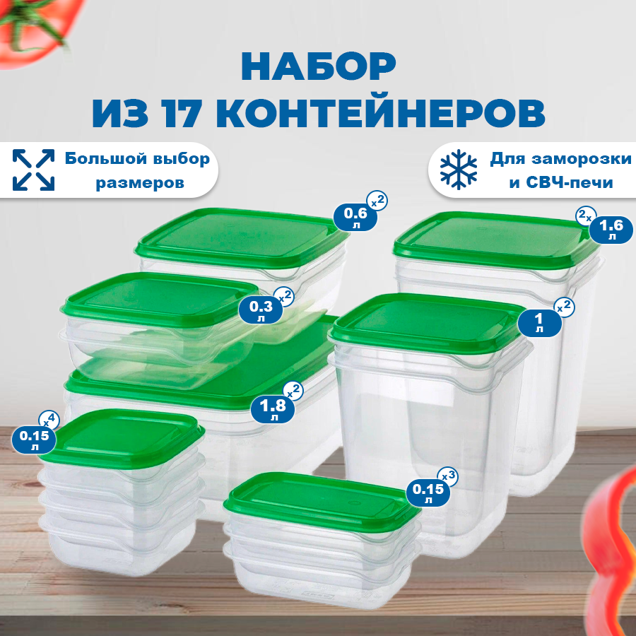 Контейнер для еды IKEA прута, 17 штук пластиковый набор бокс для сыпучих продуктов 17 шт интересное: