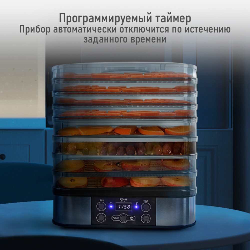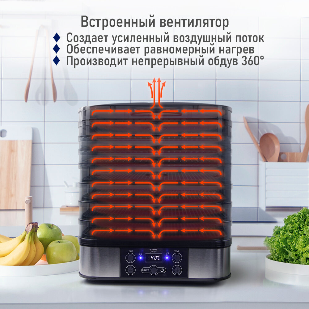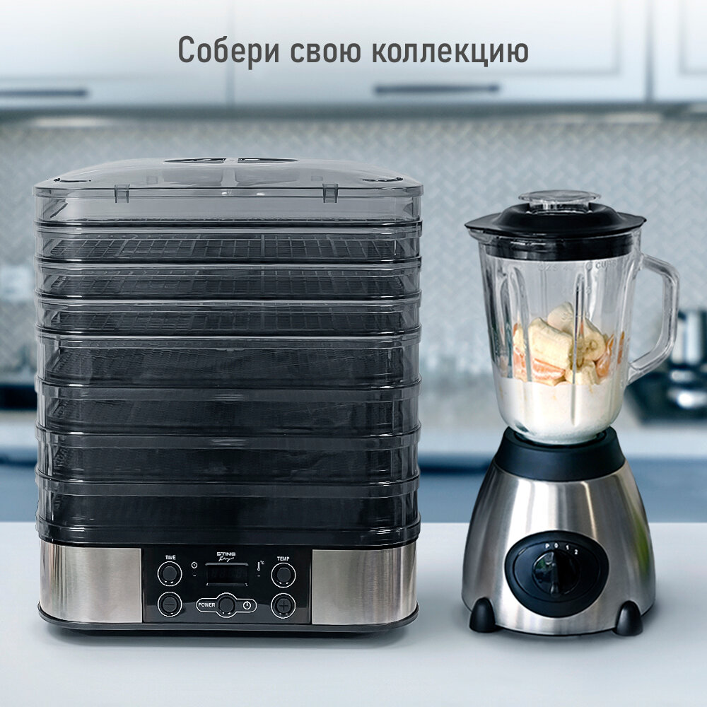Купить Электросушилка STINGRAY ST-FD701B 12 поддонов: 4 разборных поддона для сушки, 4 обычных поддона, 2 для ягод, 2 для пастилы черный жемчуг