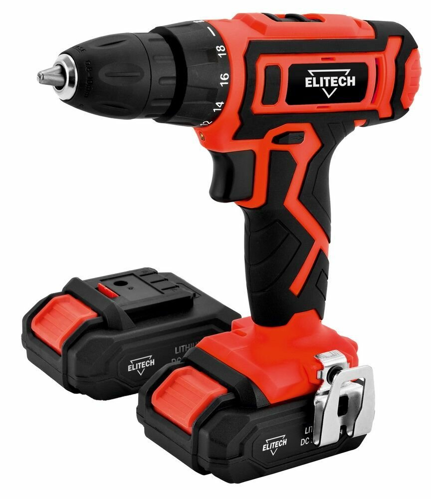 Купить Дрель-шуруповерт Elitech ДА 162СЛ Li-ion в кейсе, 2х1.7Ач, от аккумулятора, 28 Нм