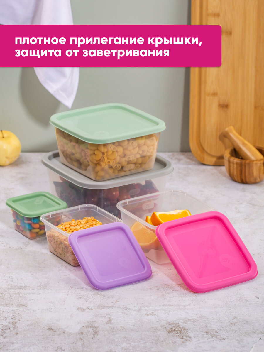 Набор контейнеров для продуктов FUSION 5шт (1,7л; 1,1л; 0,63л; 0,33л; 0,15л) интересное: