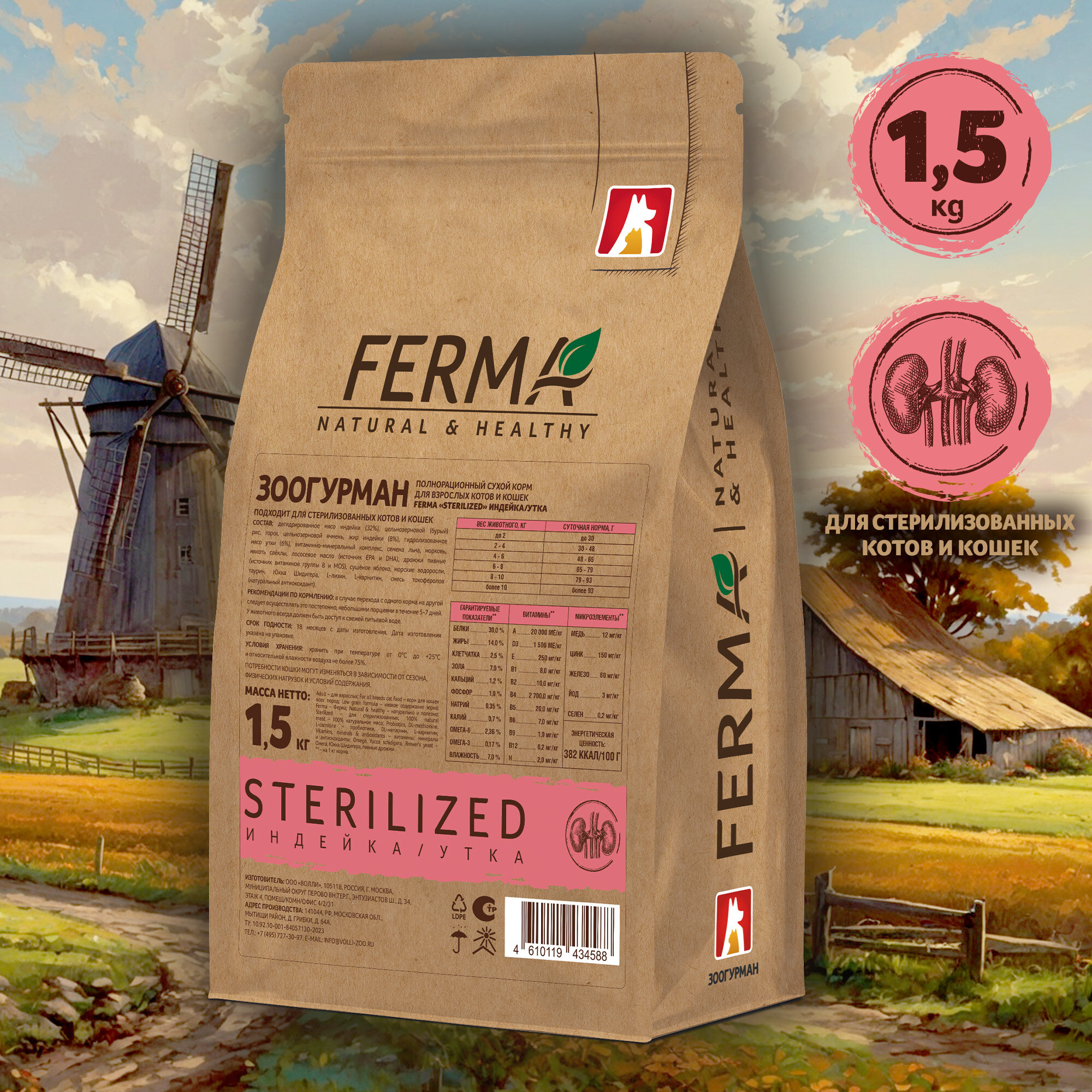 Купить Полнорационный сухой корм для взрослых котов и кошек Зоогурман, FERMA «STERILISED» Индейка/Утка 1,5 кг
