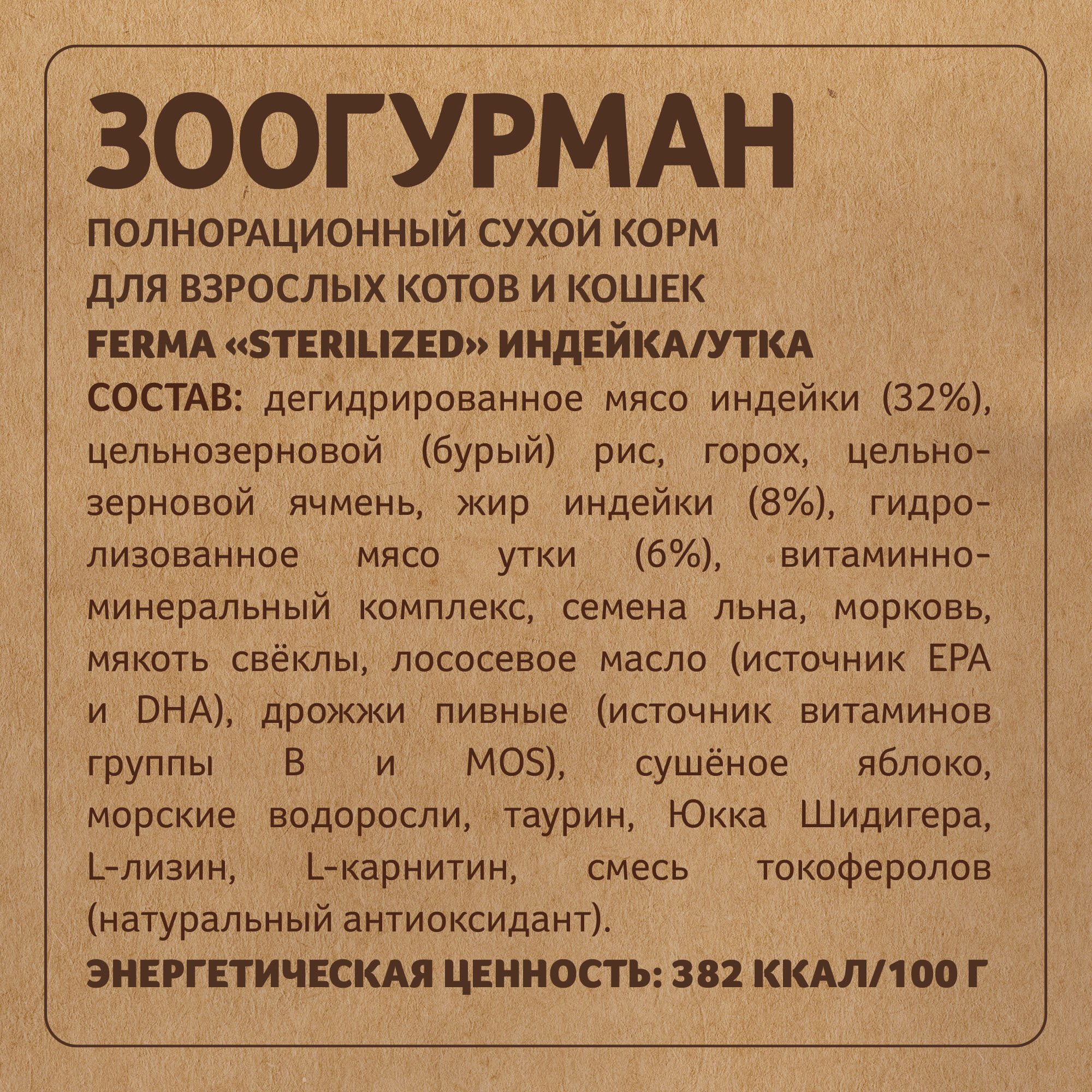 Полнорационный сухой корм для взрослых котов и кошек Зоогурман, FERMA «STERILISED» Индейка/Утка 1,5 кг интересное: