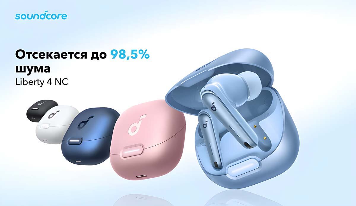 Беспроводные наушники Anker Soundcore Liberty 4 NC Global Version - Улучшенная версия, Новинка 2023 - Hi-Res, LDAC, Оригинал, Синий